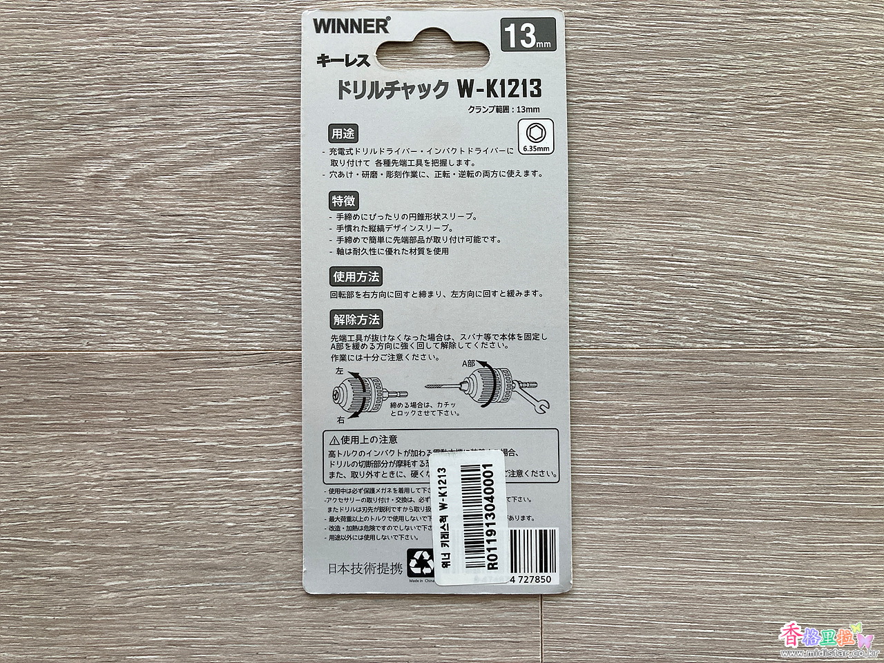 13mm 구경까지 비트를 물린 후 손으로 조여주는 타입이다.