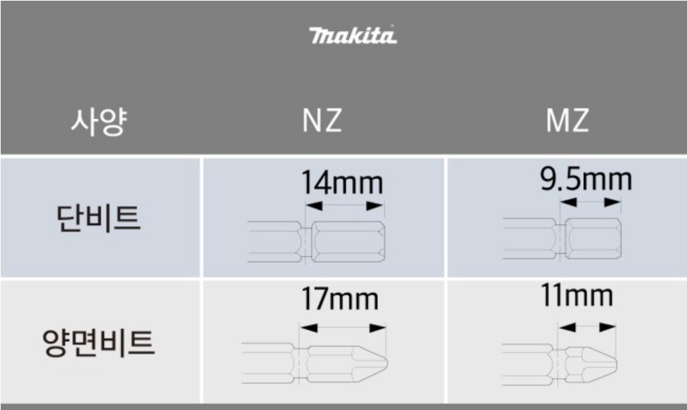 마키타의 드릴 비트는 NZ 형 MZ형이 있다는 것을 알았다.