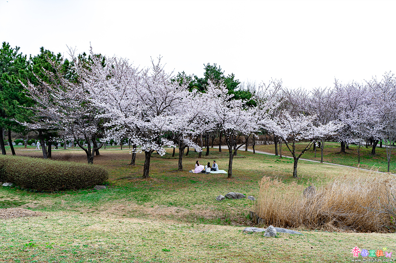 벚꽃나무 아래 돗자리 펼치고 피크닉을 즐기는 가족도 보인다.