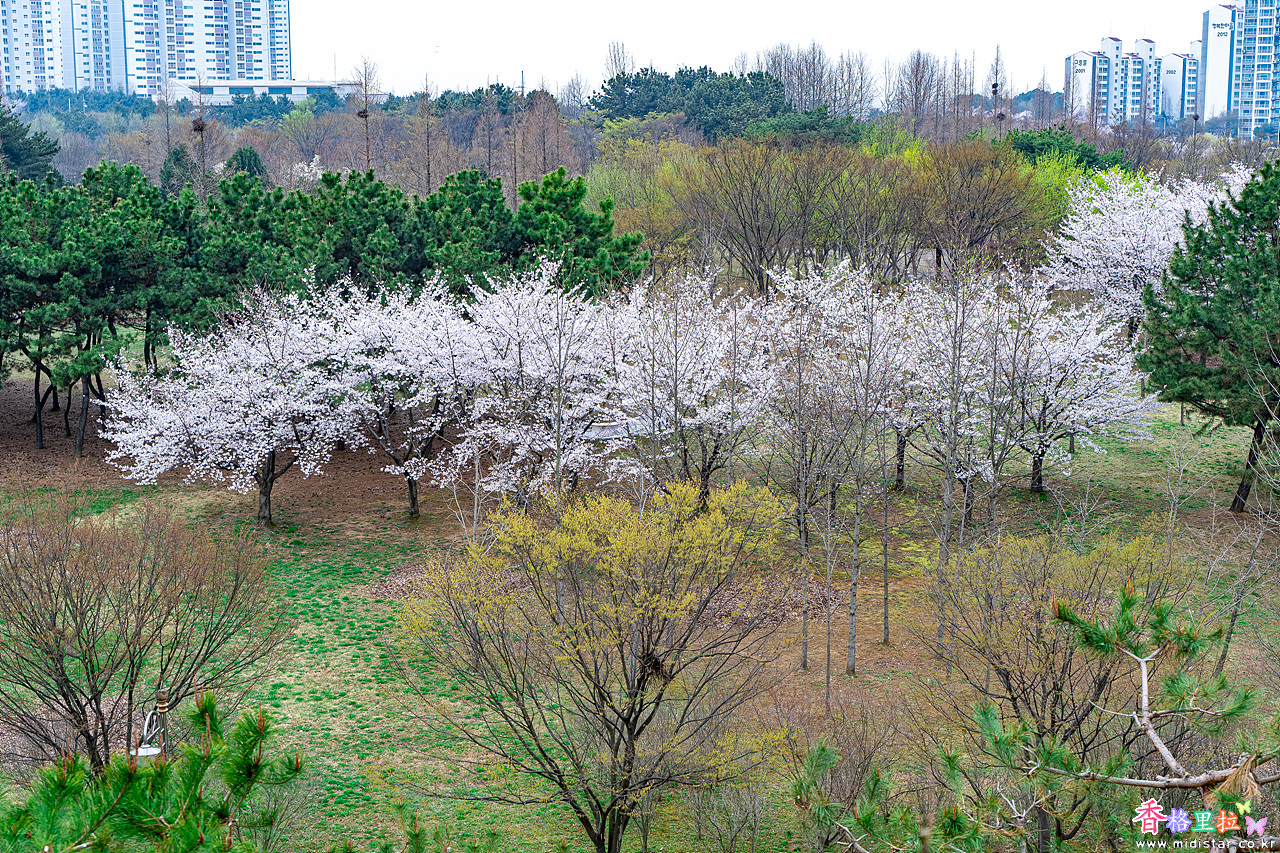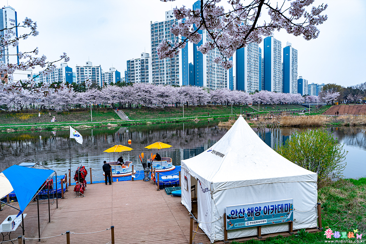 지난 4월 1일에 안산 호수공원에 찾아갔을때는 꽃망울만 맺혀있던 벚꽃나무들에 벚꽃이 활찍피었다.
