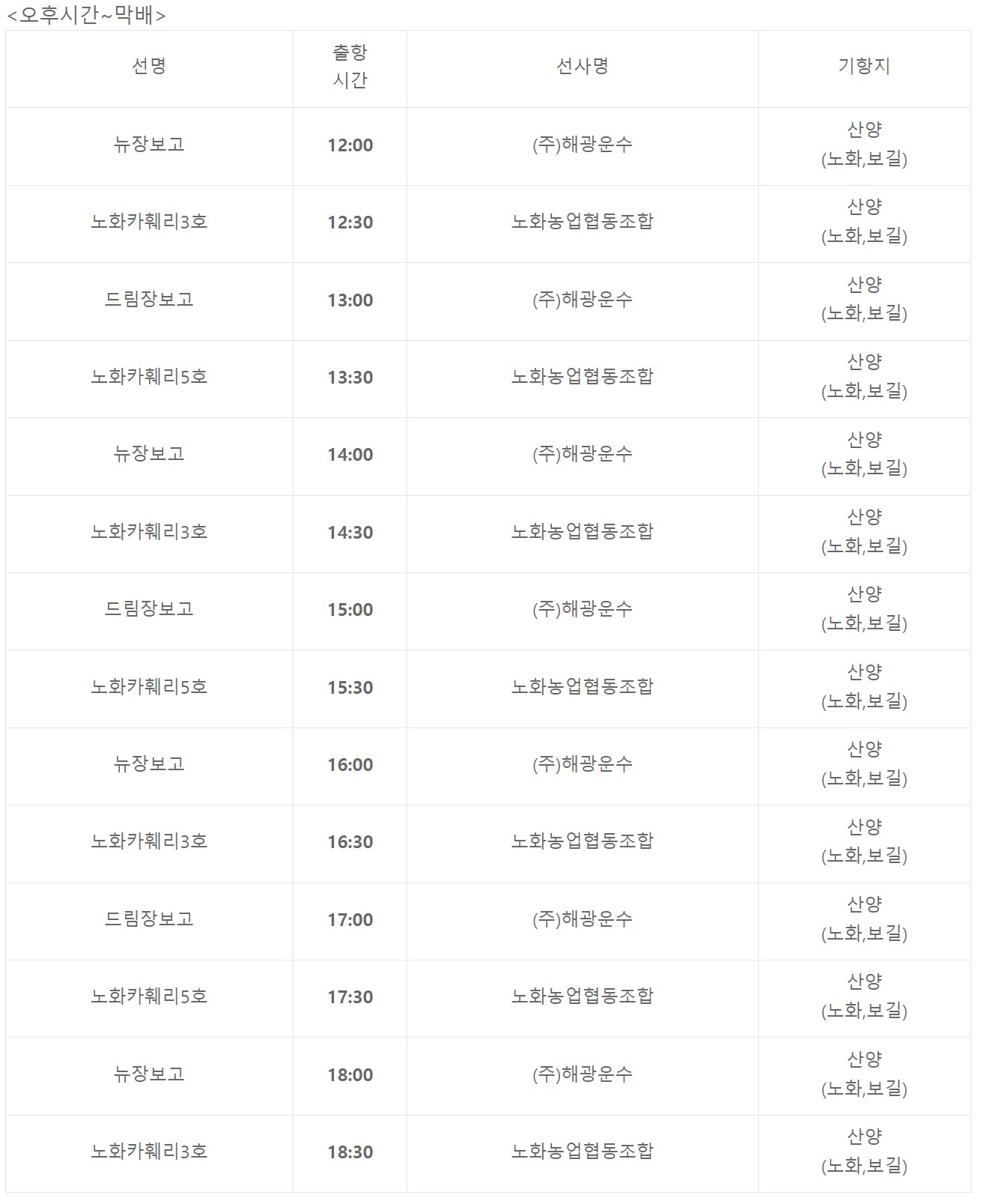 노화농업협동조합 과 (주)해광운수 2개의 회사에서 아래와 같이 30분 간격으로 운항중이다.