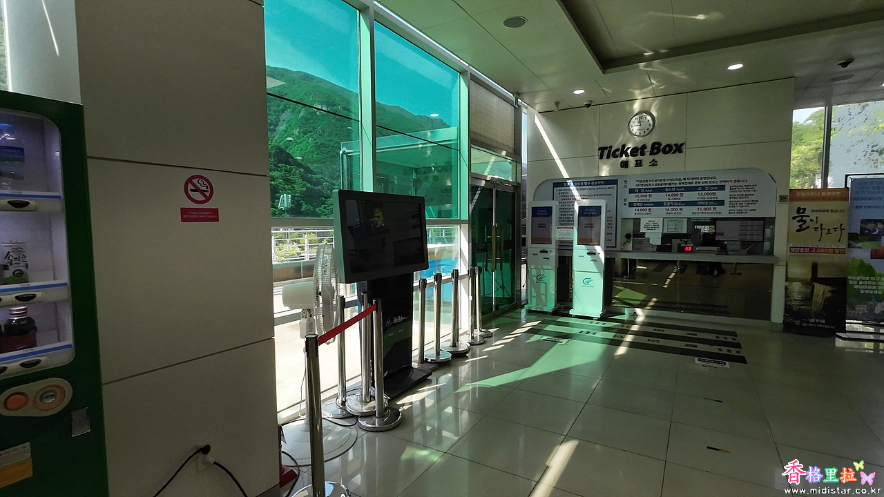 입구 왼쪽에 자동 매표기와 창구 매표소가 있다.