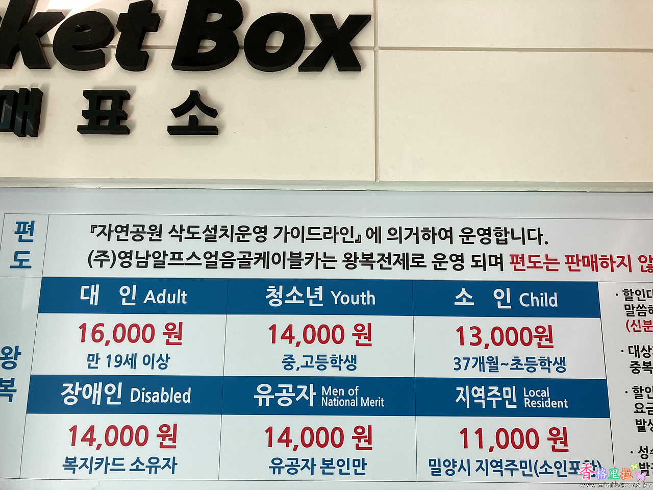 밀양 얼음골 케이블카는 왕복표만 판매한다.