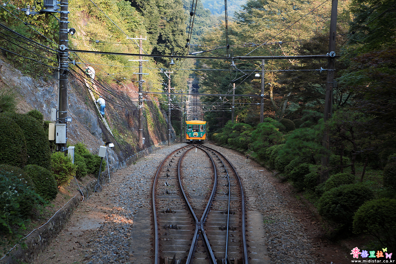 최대경사가 31도로 일본에서 가장 가파른 경사를 오르는 케이블카이다.