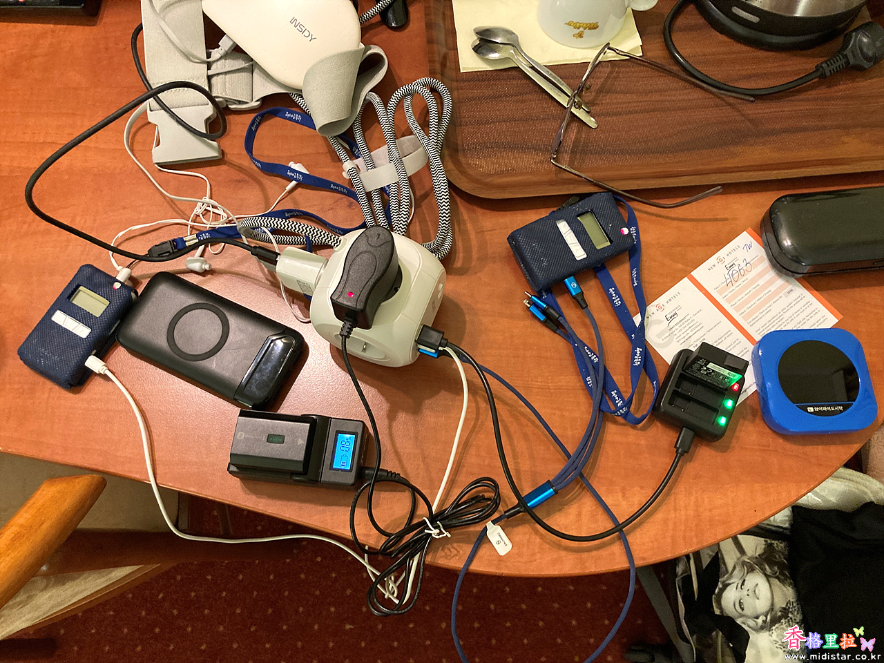 각종 배터리 충전 중인데 지난번 알리에서 구입한 전원 콘센트를 가져가서 유용하게 잘 사용하고 있다.