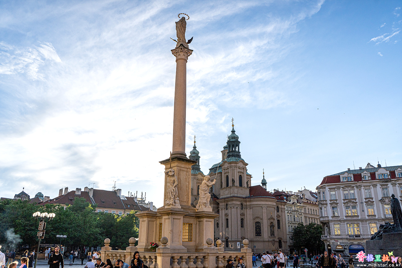초기 바로크 양식의 마리안 기둥은 1648년 스웨덴 군대에 맞서 프라하를 지켜준 성모 마리아에게 감사를 표하기 위해 뮌헨(1638)과 비엔나(1647)의 기둥을 모델로 합스부르크 페르디난트 3세 황제가 1650년에 세웠습니다. 따라서 세 번째로 오래된 기둥이었습니다. 1918년에 이전 오스트리아-헝가리와 합스부르크 통치의 상징으로 프라하 시민들이 마리안 기둥을 철거했으나 조각가 페트르 바냐(Petr Váňa)가 만든 복제품이 2020년 6월 4일 원래 자리에 설치되었습니다.