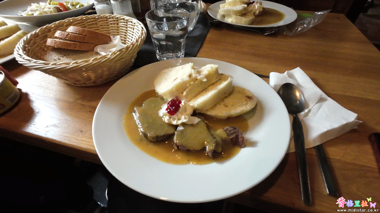 이제 저녁 식사하러 간다고 한다. 천문 시계탑에서 얼마 멀지 않은 식당에 들어갔다. 전통 체코 음식이라 한다.