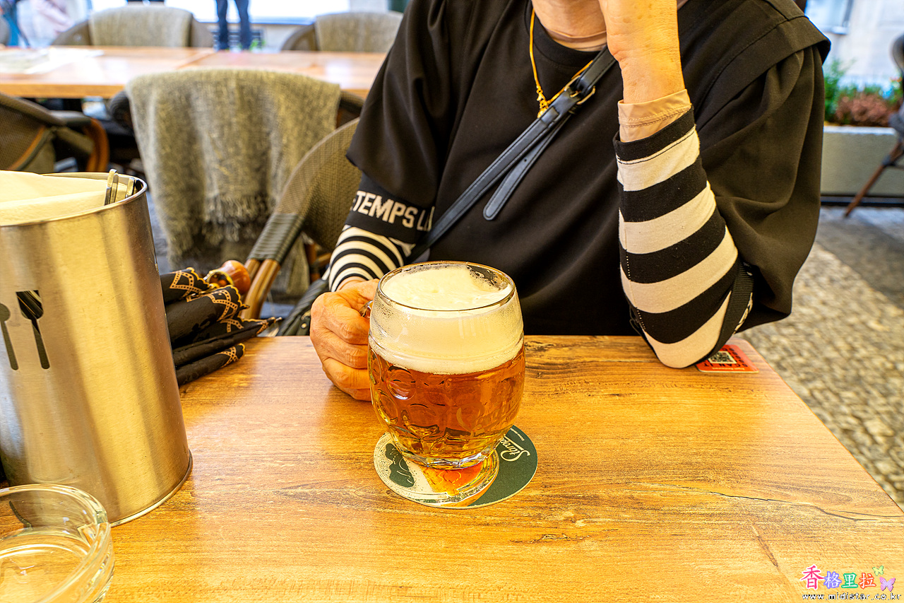 우선 앉아서 맥주 한잔 하기로 하고 바로 앞의 노천카페에 자리 잡았다. 체코의 흑맥주가 유명하다 해서 나는 흑맥주, 아내는 보통 맥주를 주문했다.