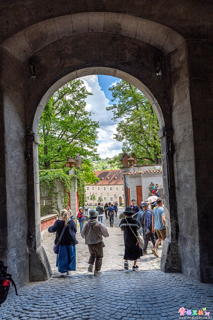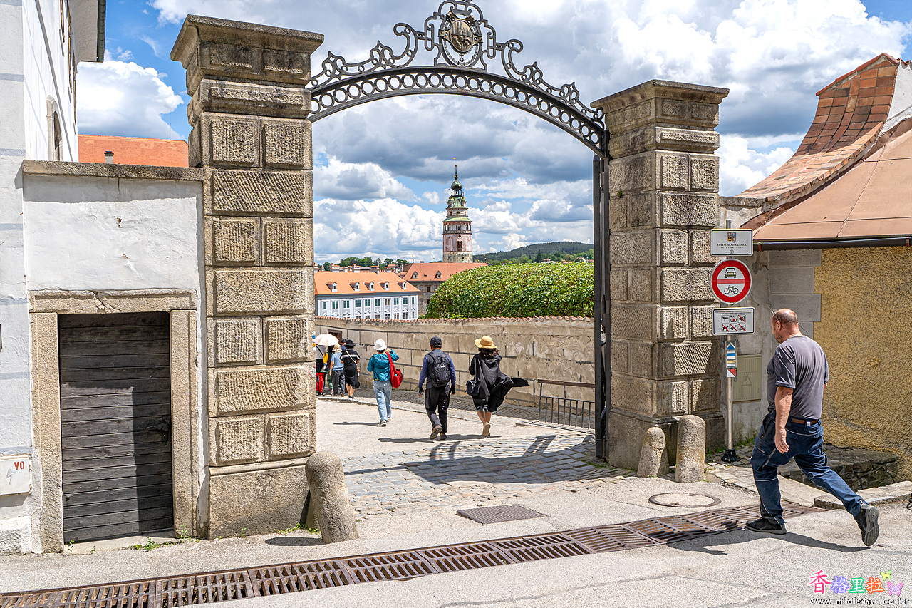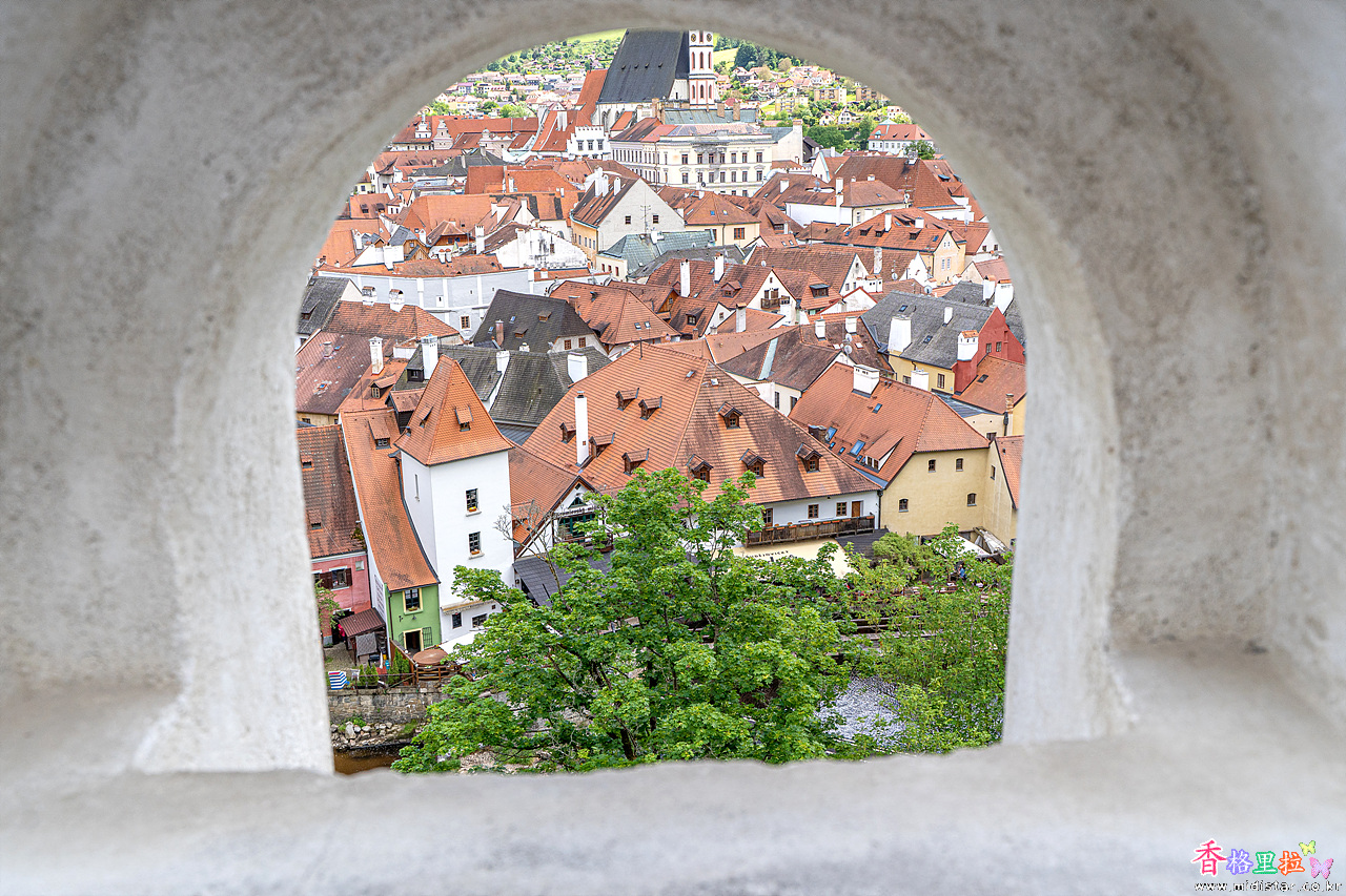 오른쪽의 작은 문으로 들어가면 체스키크룸로프 성 내부의 마을이 보이는 전망대가 나온다.