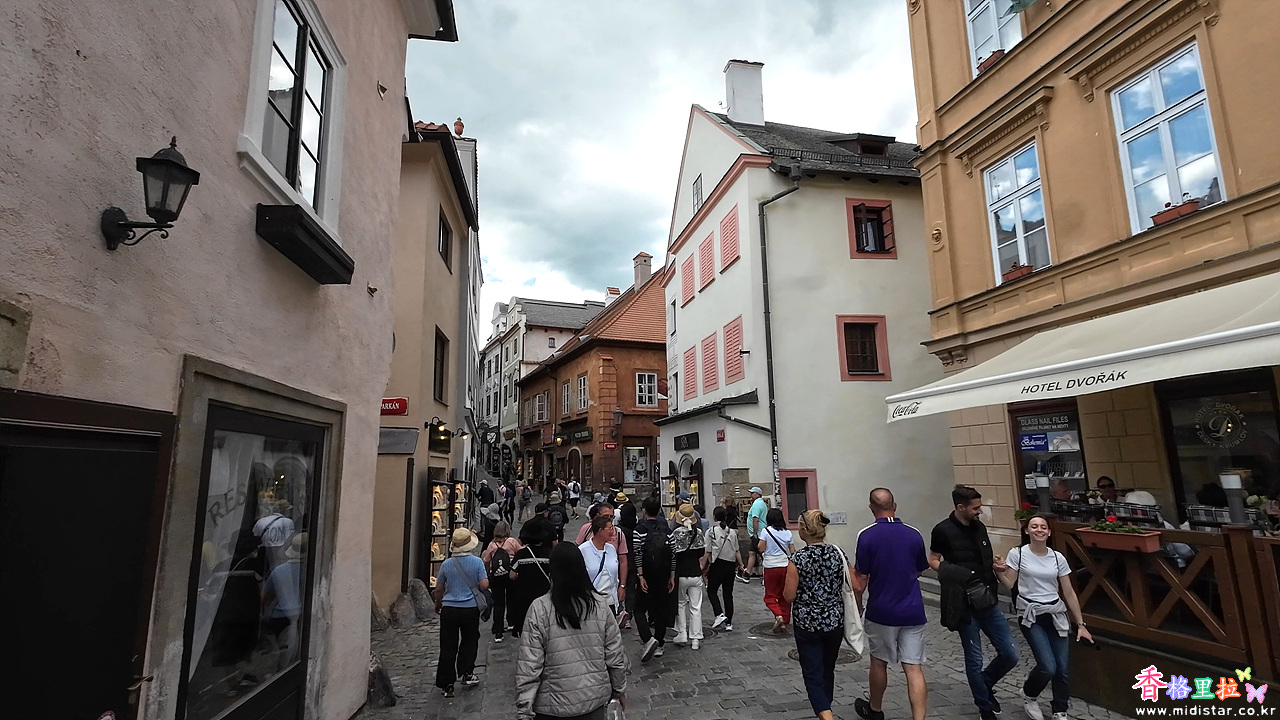 골목을 지나 되돌아보면 골목 사이로 체스키크룸로프 성탑이 보인다.
