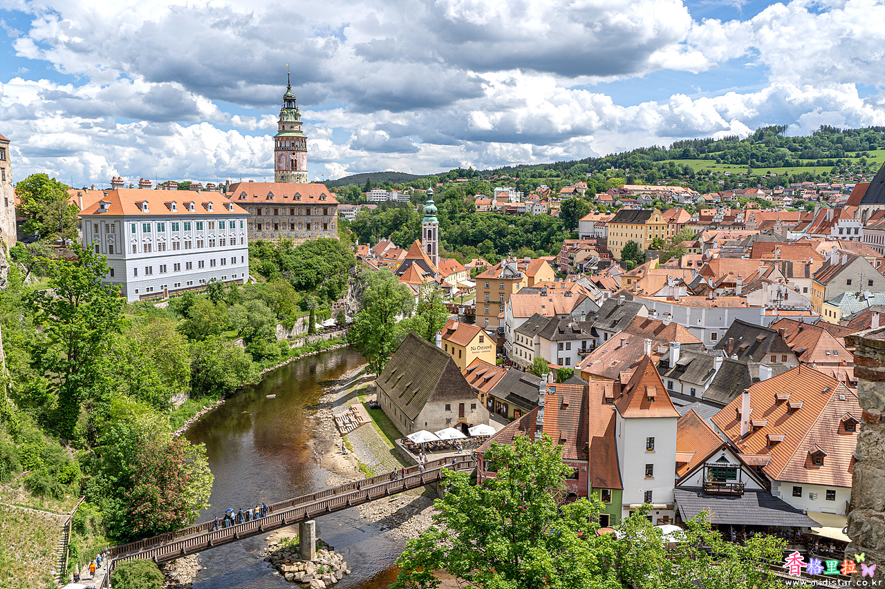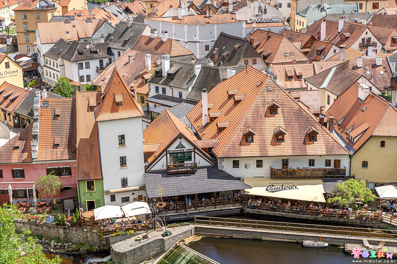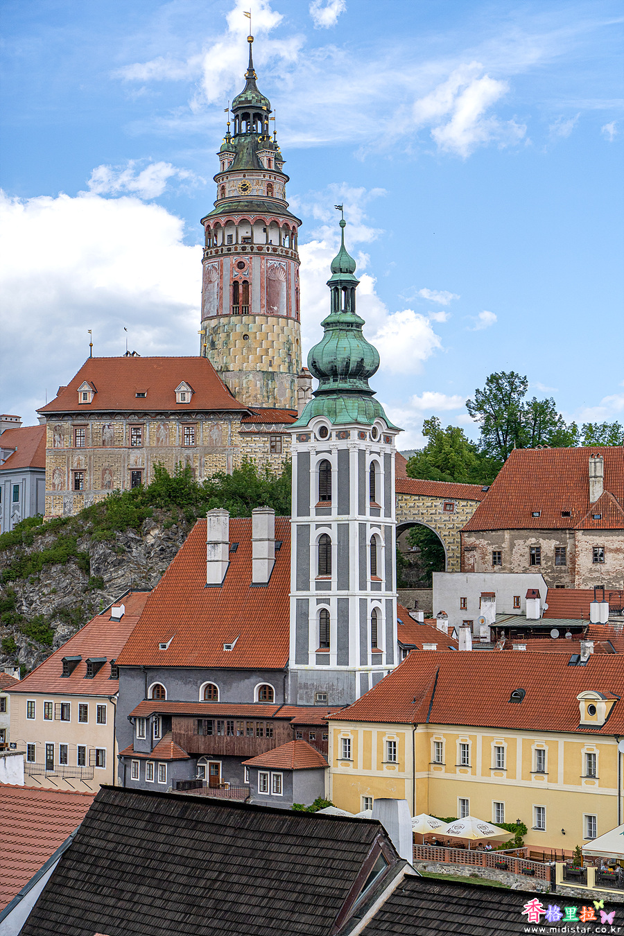 이 전망대에서 보면 다른 각도의 체스키크룸로프 성과 마을을 조망할 수 있다.