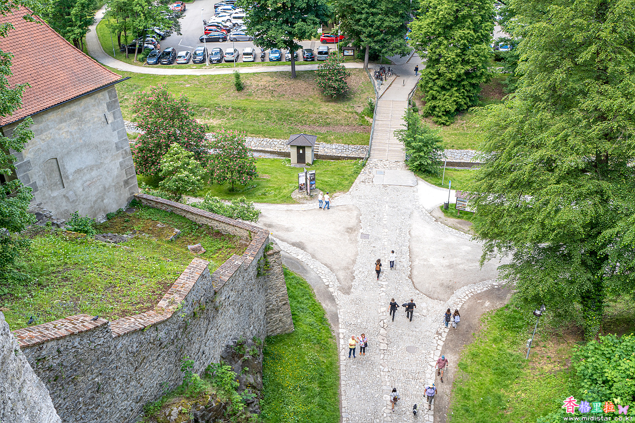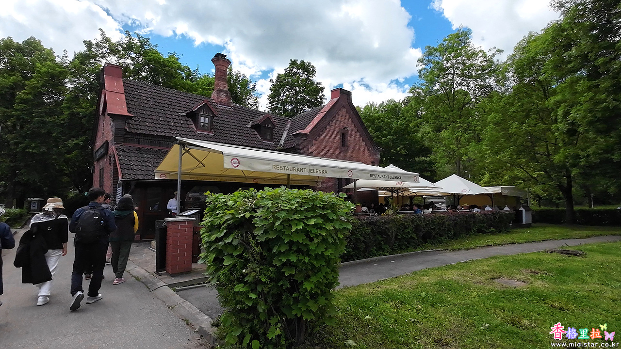망토다리 위에서 보면 아까 점심 식사를 한 식당 Jelenka 가 있는 공원이 보인다.
