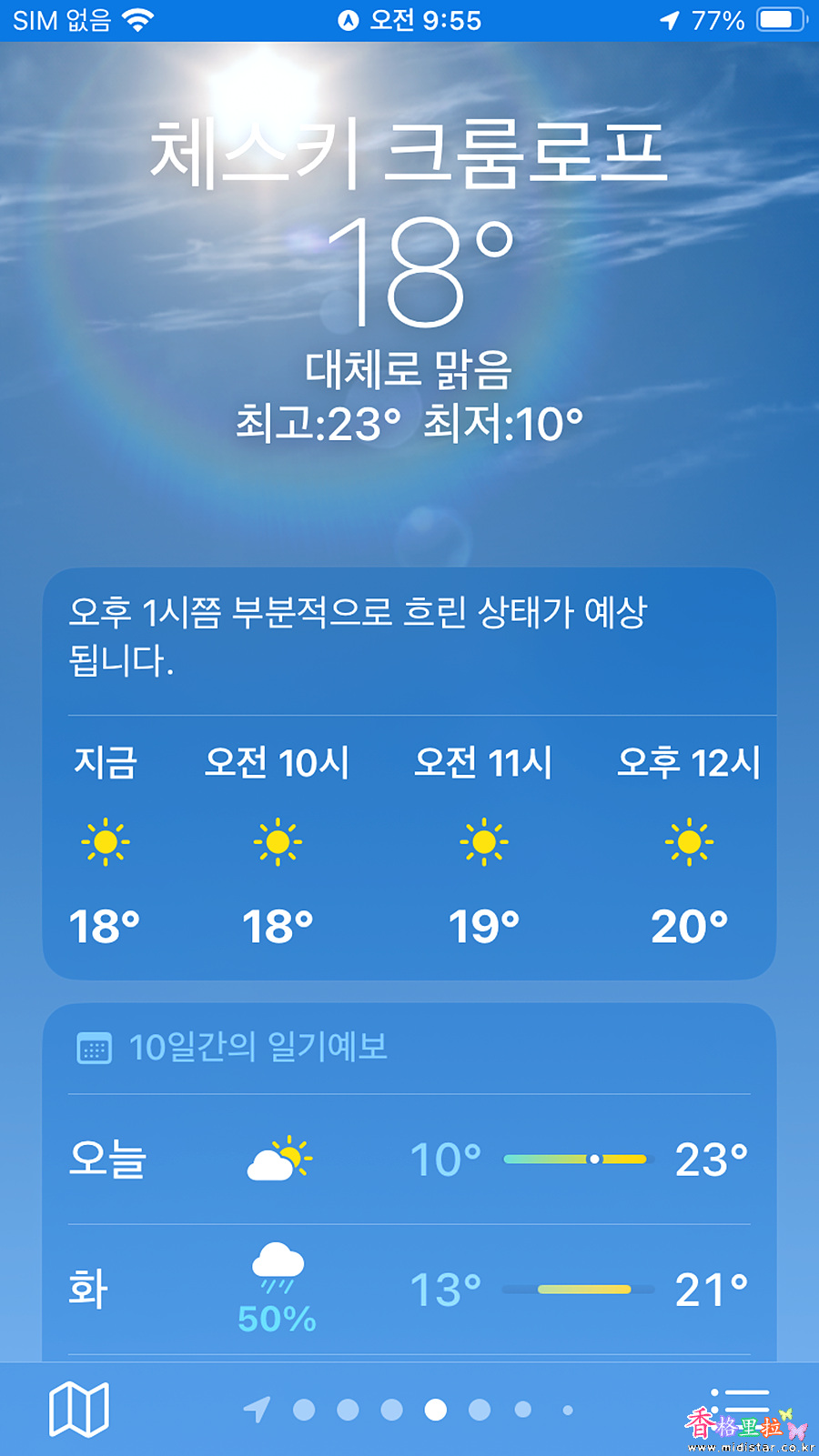 WiFi도시락으로 일기예보를 보니 대체적으로 맑은 날씨다.