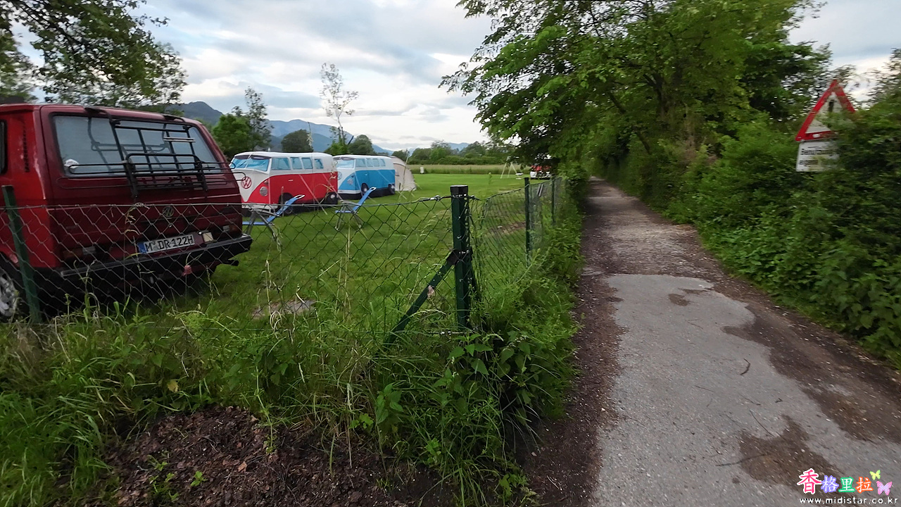캠핑장인지 캠핑카들이 서 있었다.