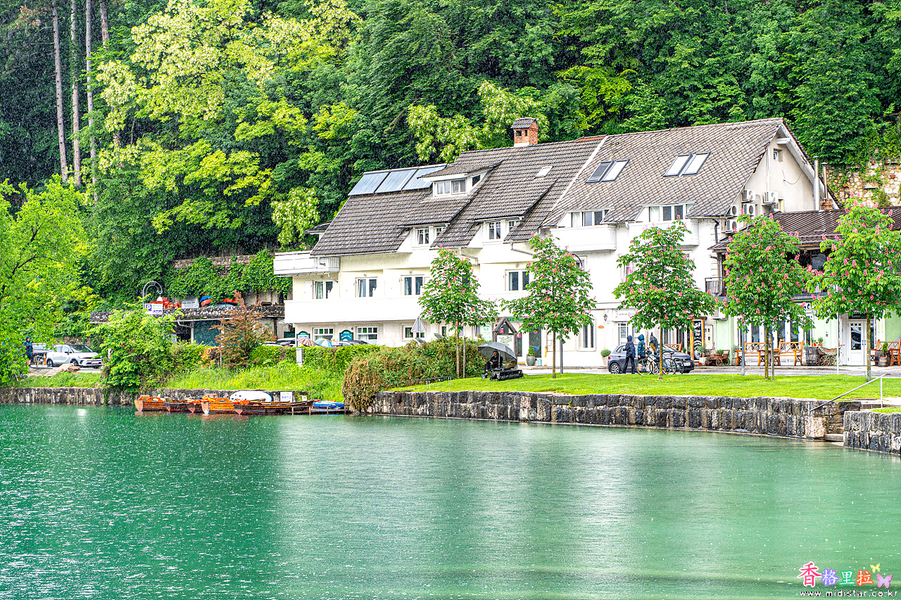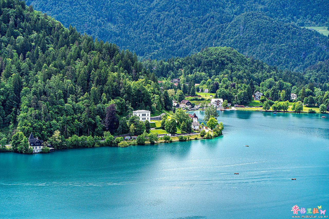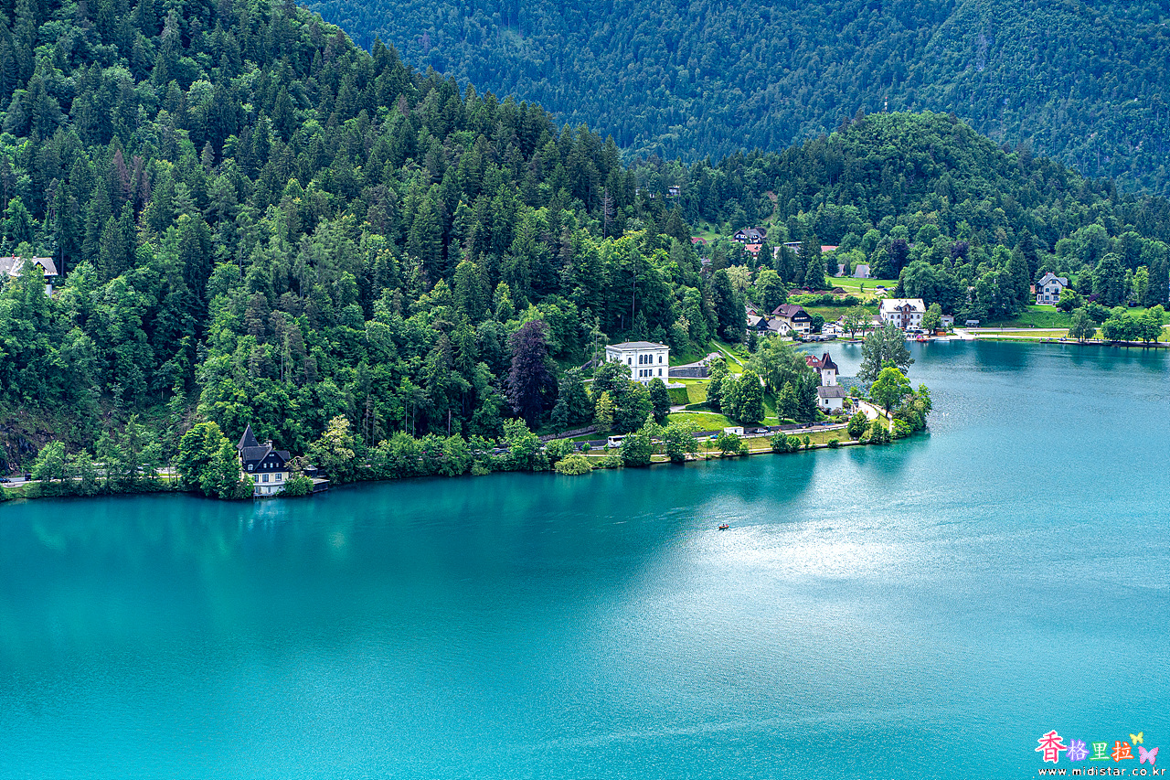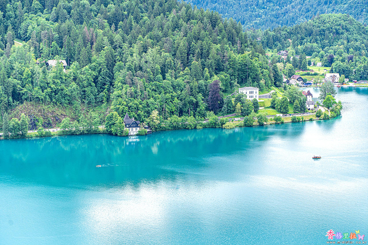 블레드 호숫가의 집들이 동화책의 그림같다.