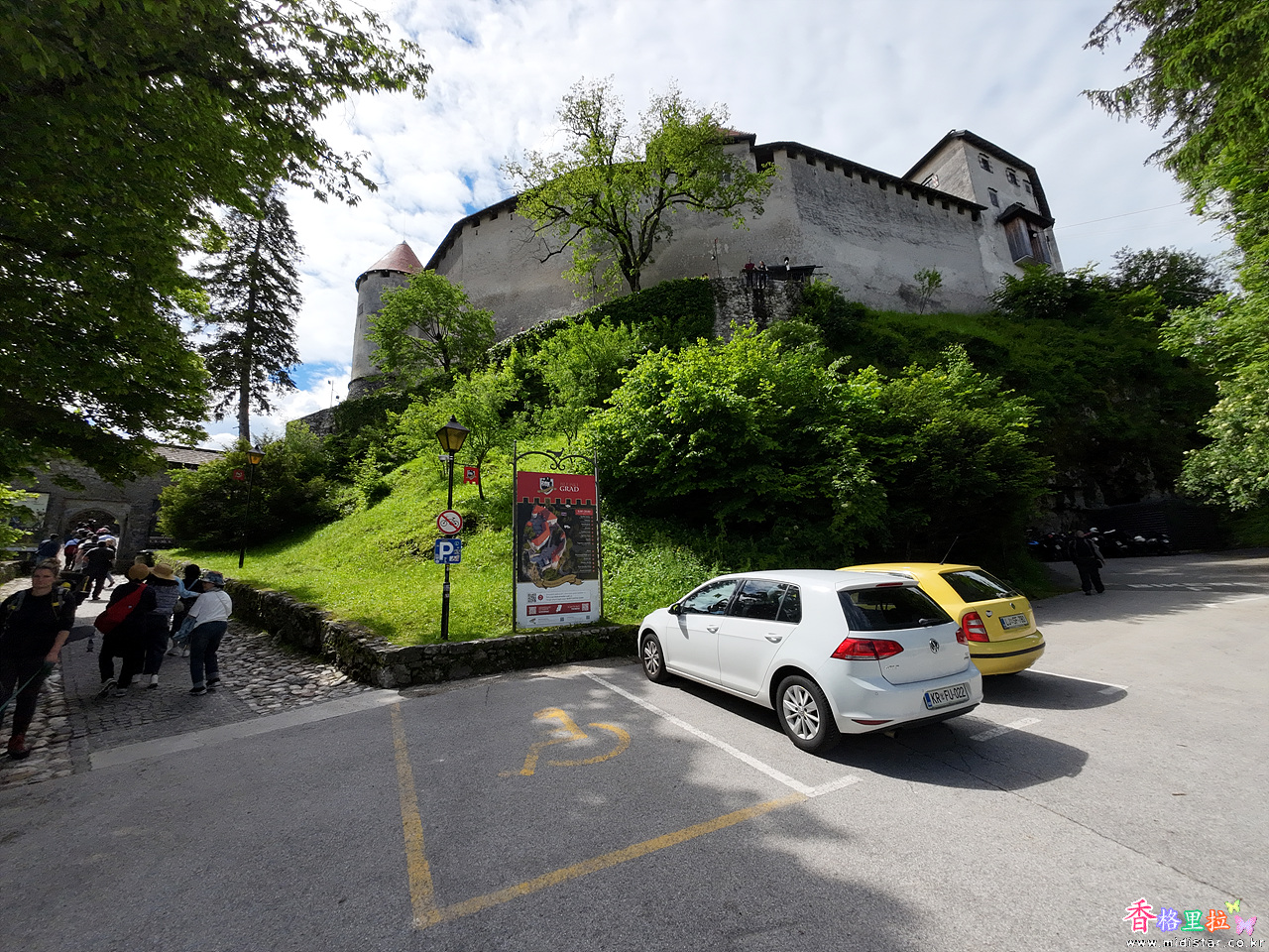 블레드 성 앞의 주차장에 오르는 언덕길은 대형버스 2대가 교행 하기 어려울 정도로 좁은 길이었다. 주차장에 도착한 시간은 11시였다. 다행히 블레드성 지역은 비가 오지 않았다.