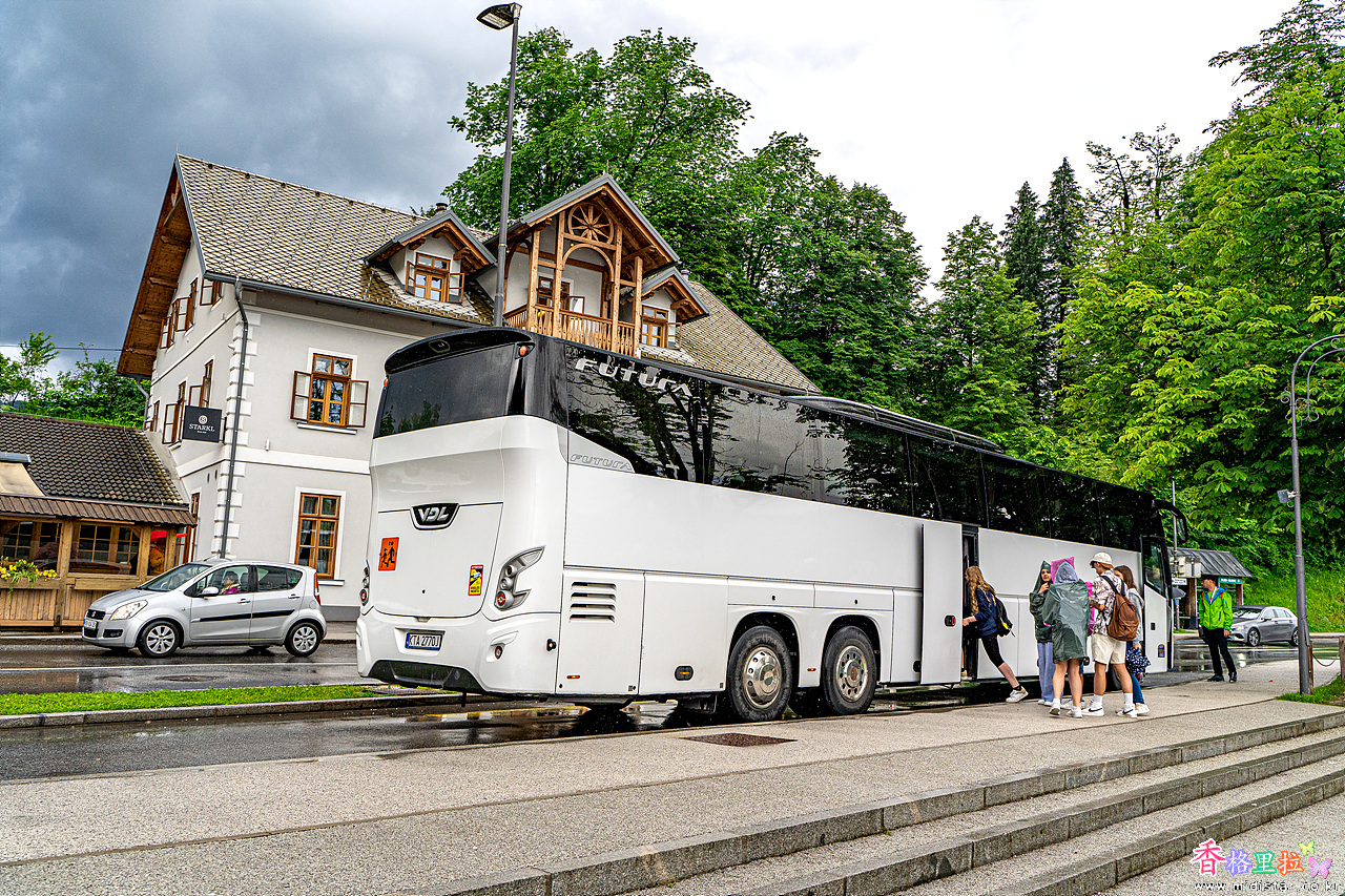 버스에 올라 블레드 호수로 가는 도중에 도로공사 중이라 한참 지체되어 보트 선착장에 도착했다.