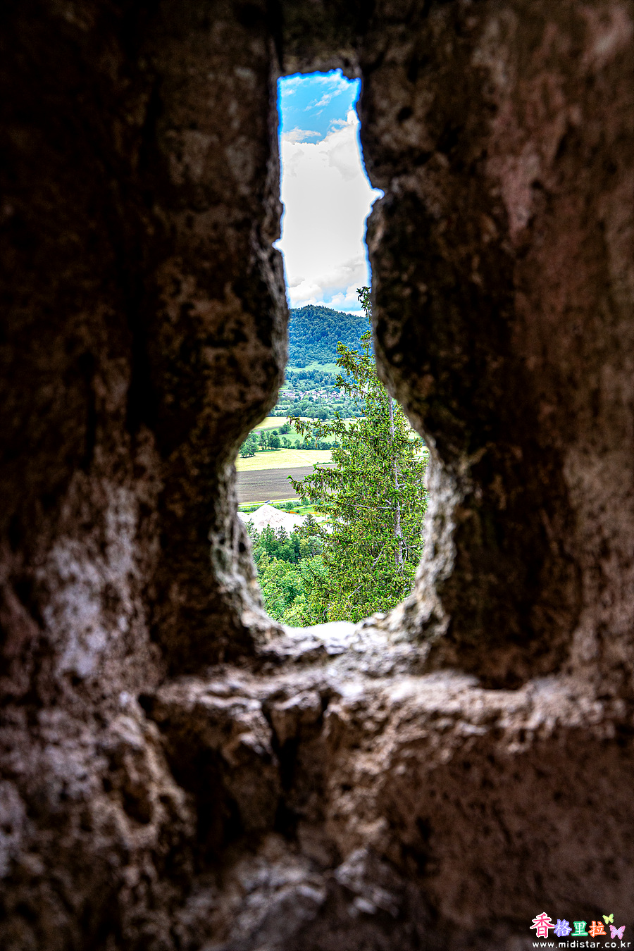 성의 바깥 풍경이 한 폭의 액자가 된다.