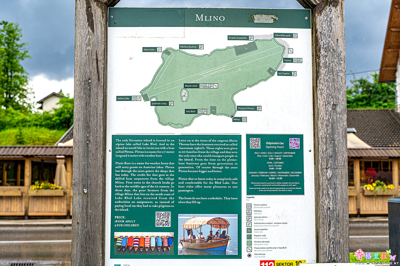 전통배 플레트나(pletna) 이용료는 왕복 15유로(2024.5 현재)이다.