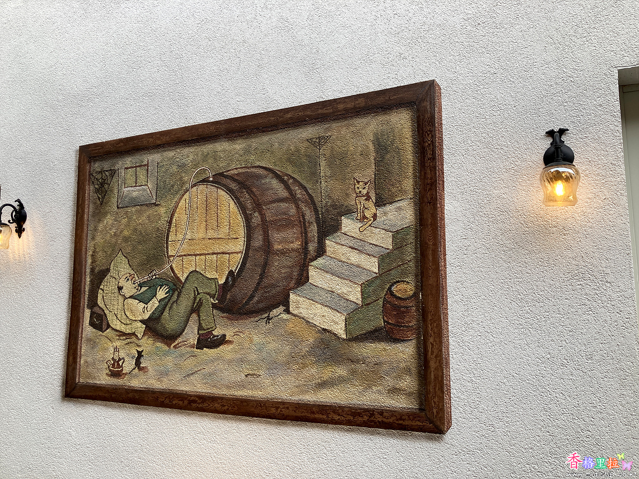 식당의 벽에 재미있는 벽화들이 그려져 있다.