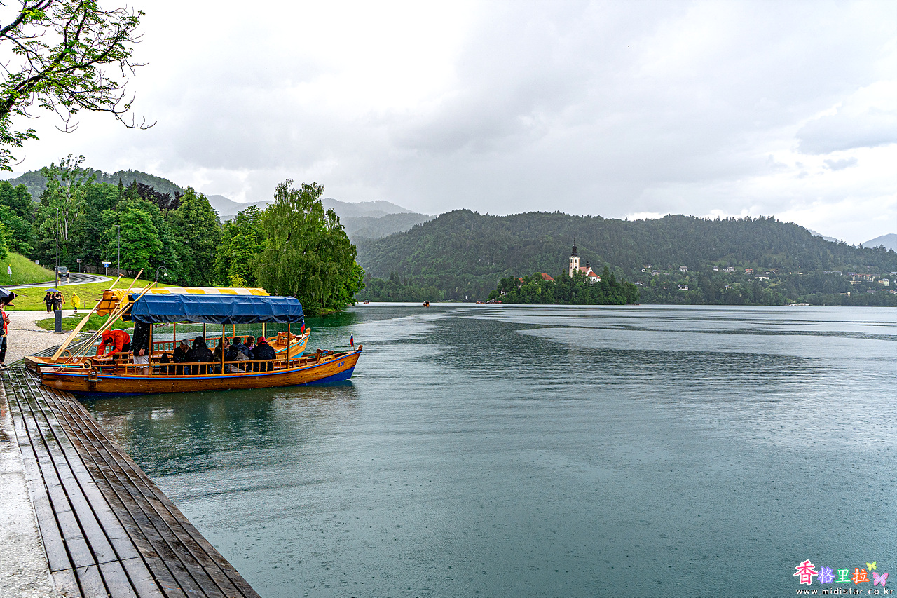 전통배 플레트나(pletna)를 타고 블레드 섬으로 향한다.