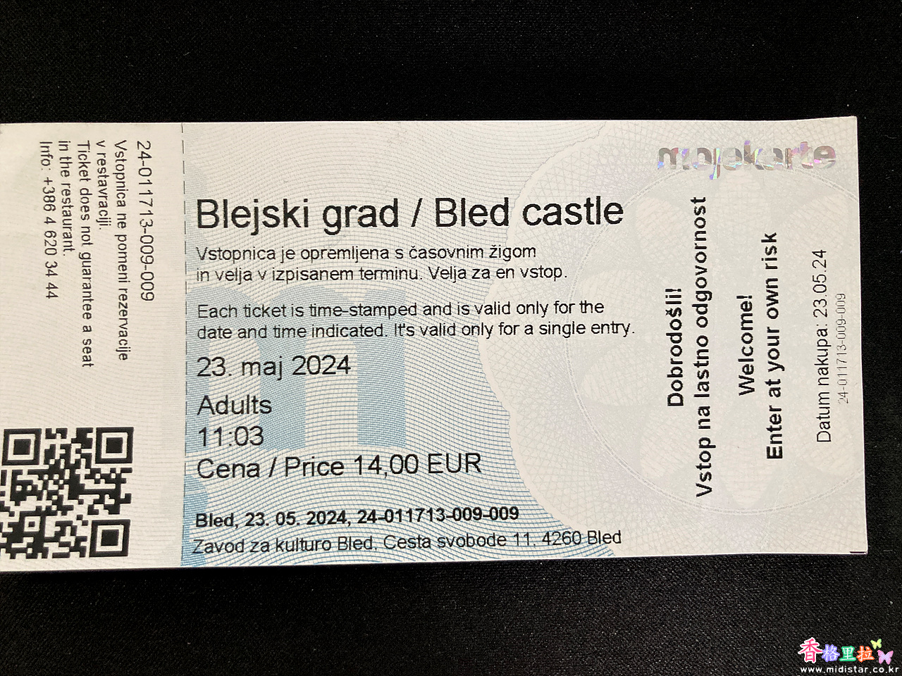 ▲블레드 성 입장권(단체 14 유로)