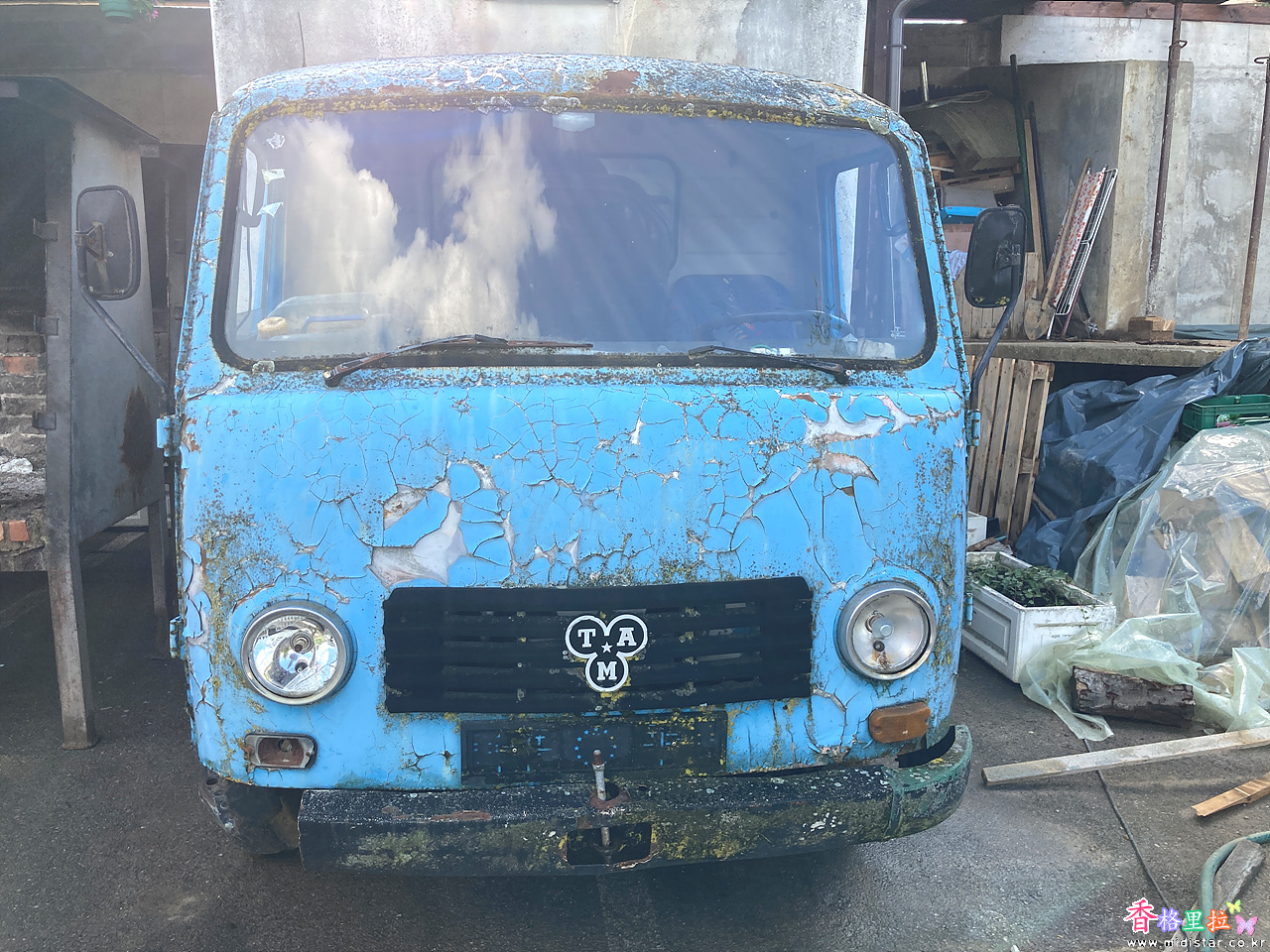 도장이 다 벗겨진 고장 난 트럭에 화덕이 설치되어 있었다.
