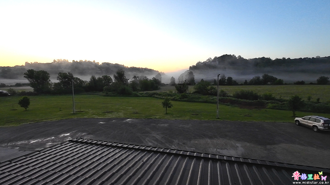 새벽에 일어나 창밖을 내다보니 옅은 안개가 깔려있는 아침 풍경이 운치 있다.