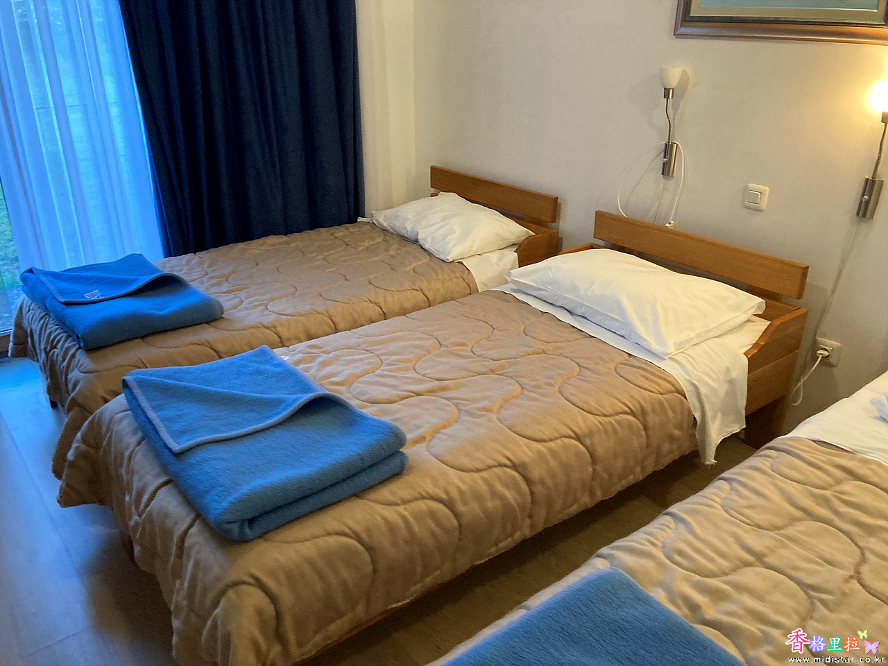 식사하고 호텔 앞 주차장으로 가니 버스가 한참을 돌아서 있었다. 짐을 찾아 배정받은 룸(1층)에 들어갔다.
