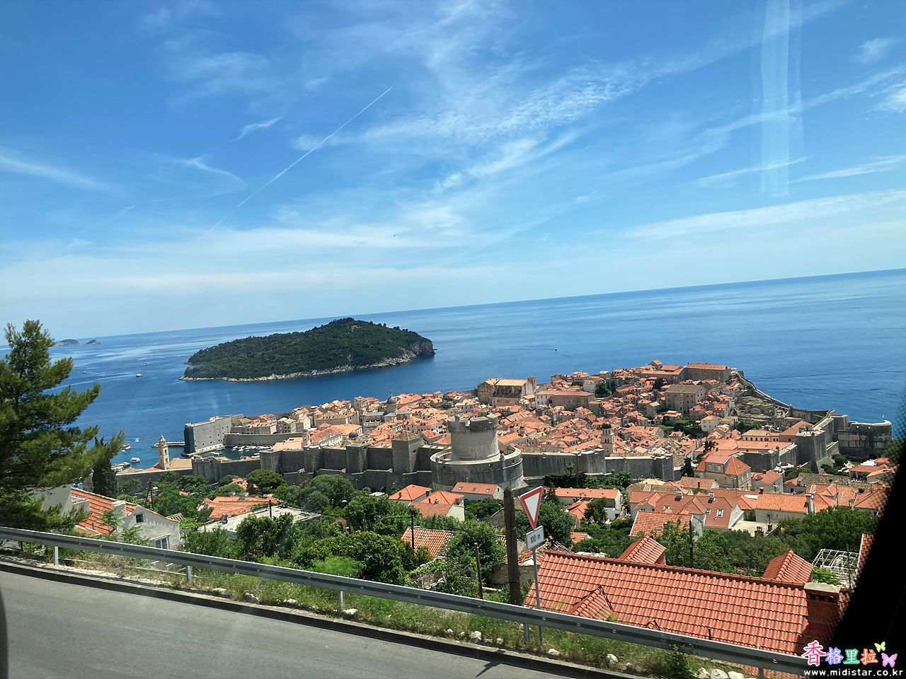 차창밖으로 두보르브니크(Dubrovnik)성이 보이는 아드리아해의 푸른 바다와는 이제 이별이다.