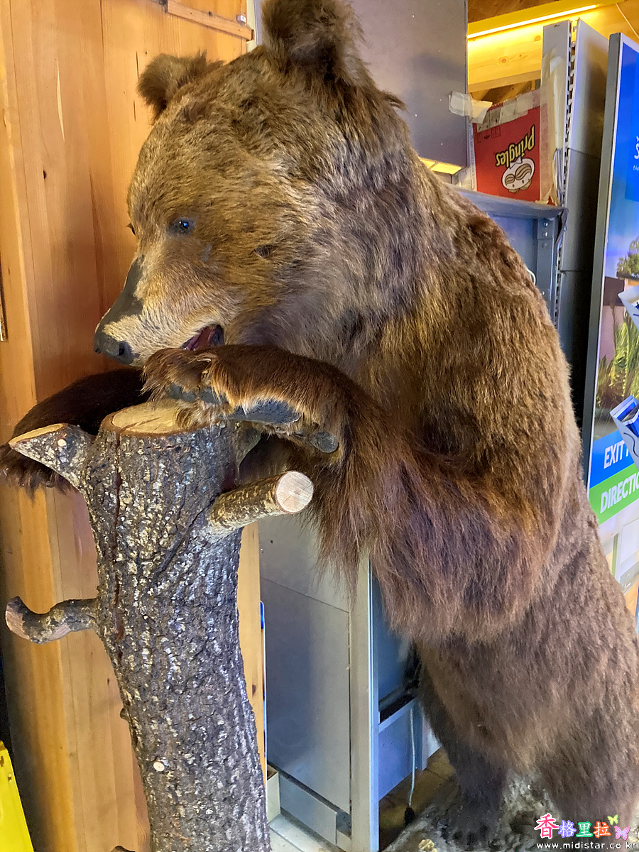 왼쪽벽의 사진을 보니 이 식당 주인이 곰을 사육하는 농장주인가 보다.