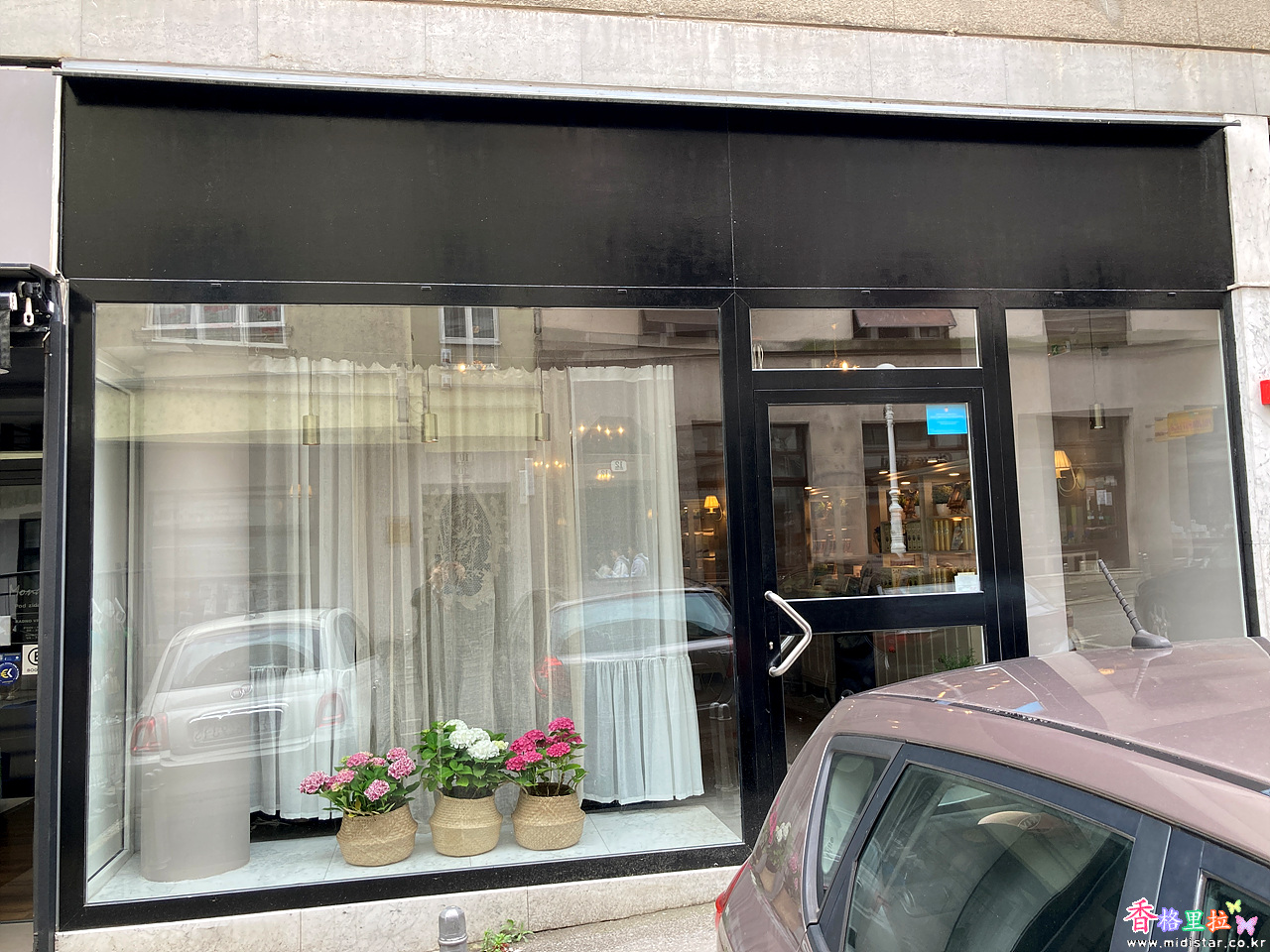 유리창 주변을 하얀 페인트로 칠해놓아 독특한 느낌이 나는 건물이다.