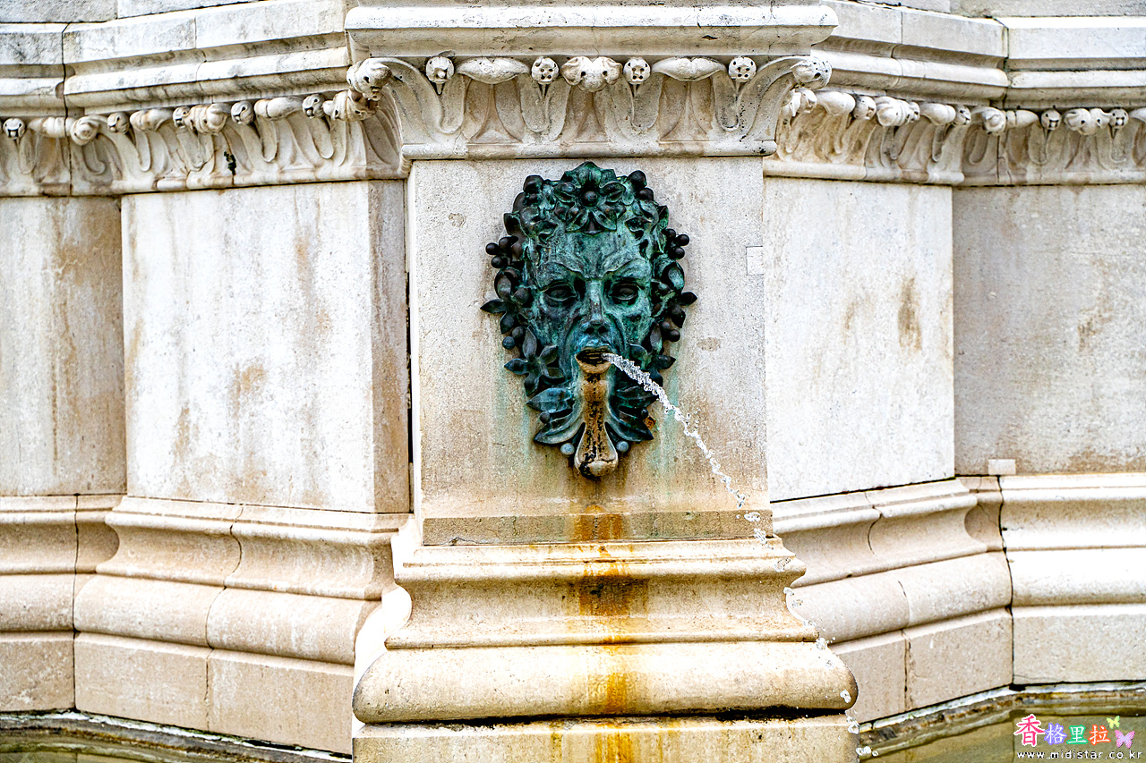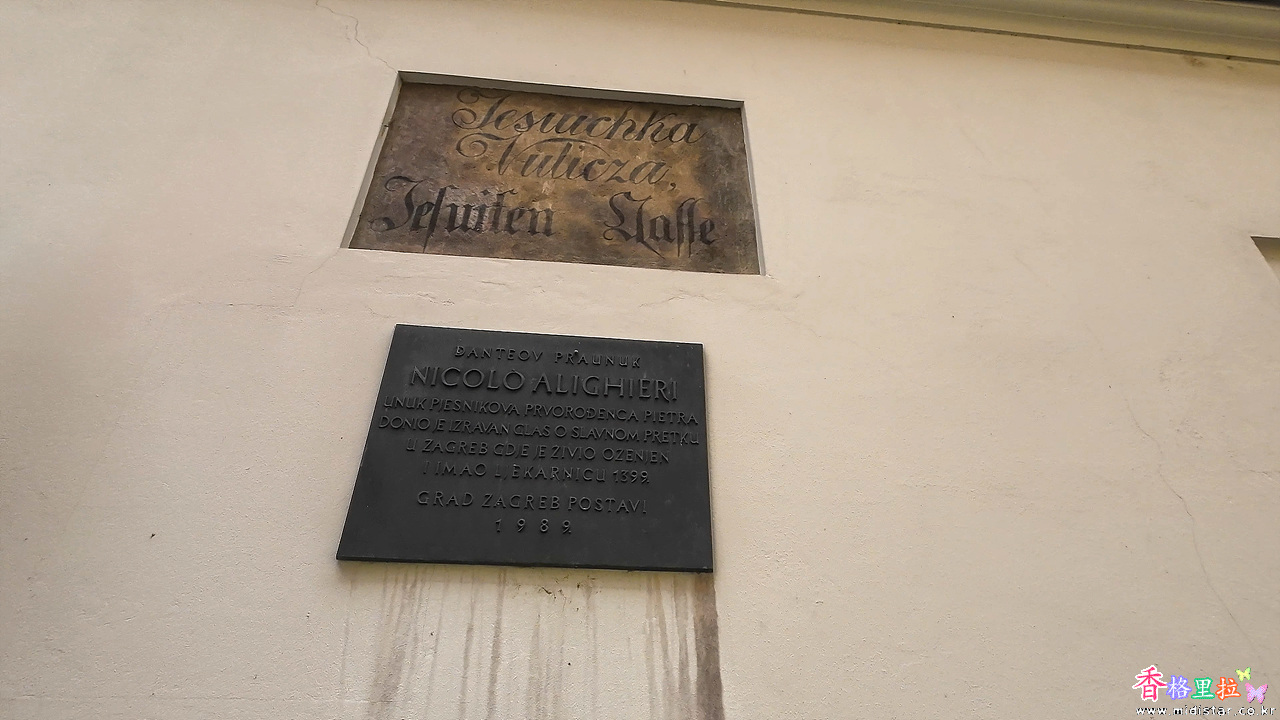 담벼락 밑에 루제르 보슈코비치(Ruđer Bošković Statue)이 있는데 의자에 앉아 지구본에 기댄 채 생각에 잠긴 보슈코비치의 모습을 형상화하고 있다.