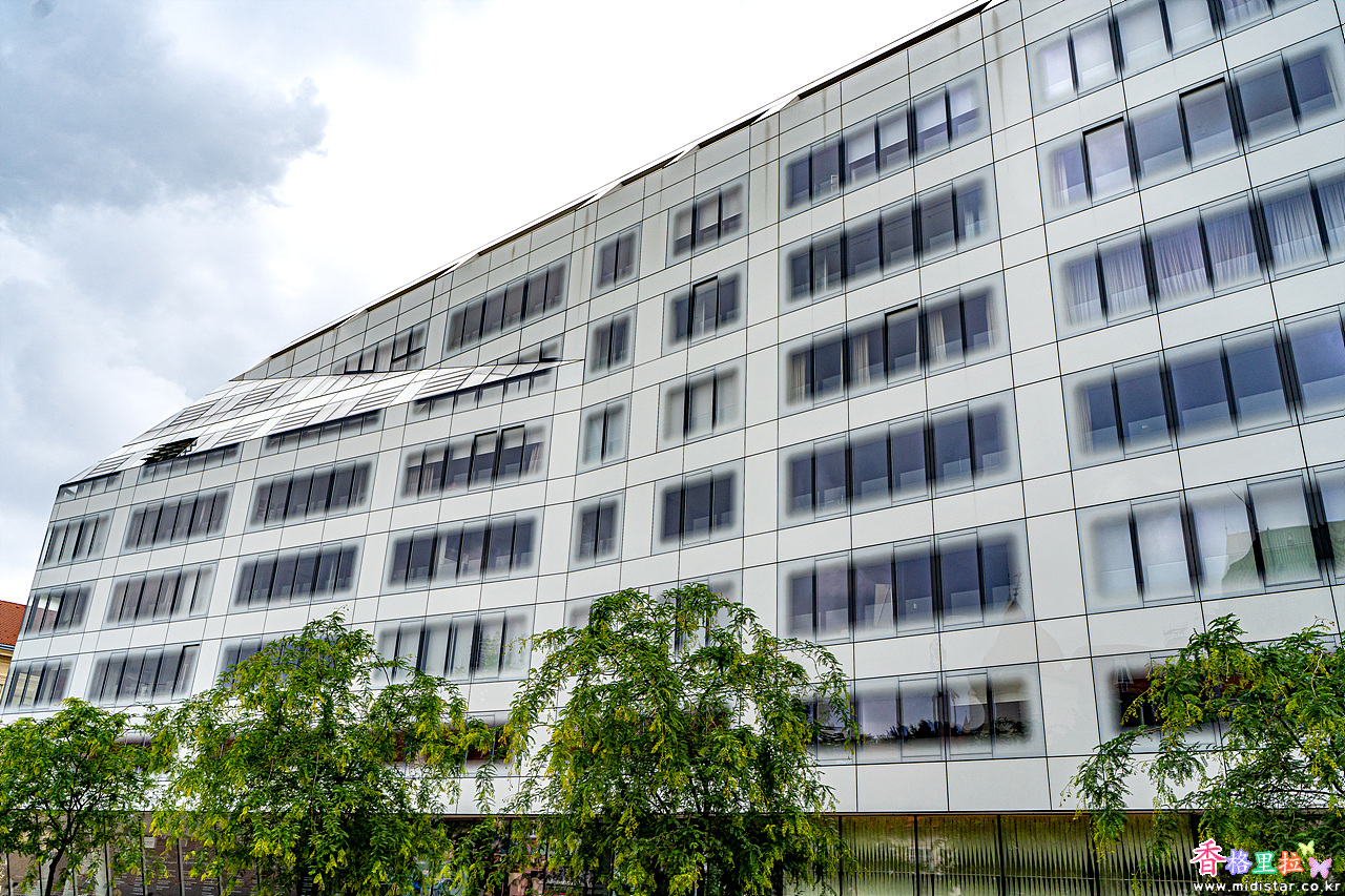 유리창 주변을 하얀 페인트로 칠해놓아 독특한 느낌이 나는 건물이다.