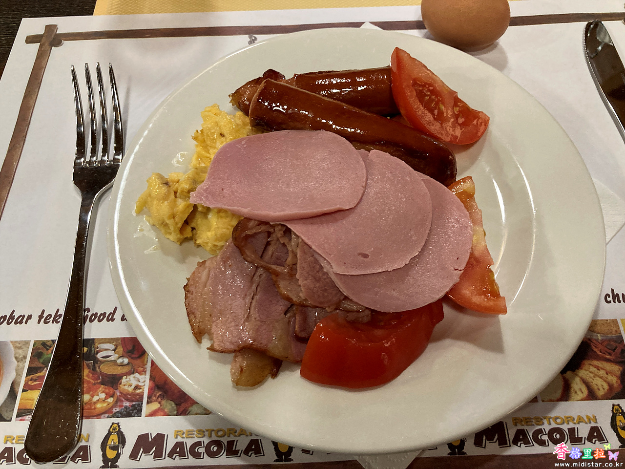 야채는 토마토 밖에 없어서 토마토와 소시지, 햄을 챙겨서 아침 식사를 했다.(7시)