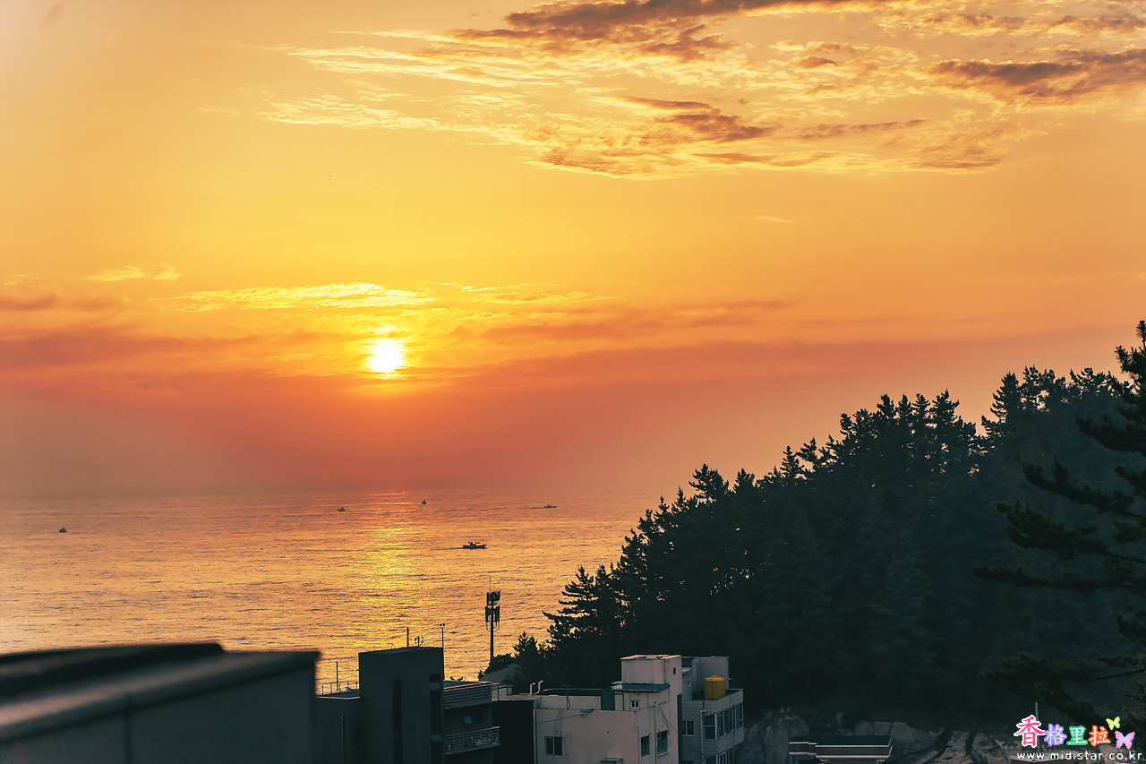 동해바다가 조금 보이는 전망인데 아침에 떠오르는 해를 볼 수 있었다.