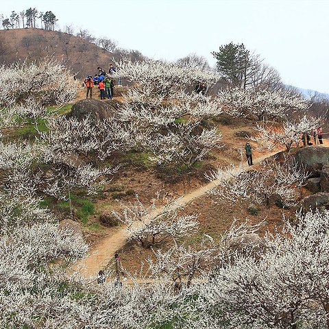 광양 다압면 매화마을국민 사진포인트 매화마을 초가집의 새벽 풍경.