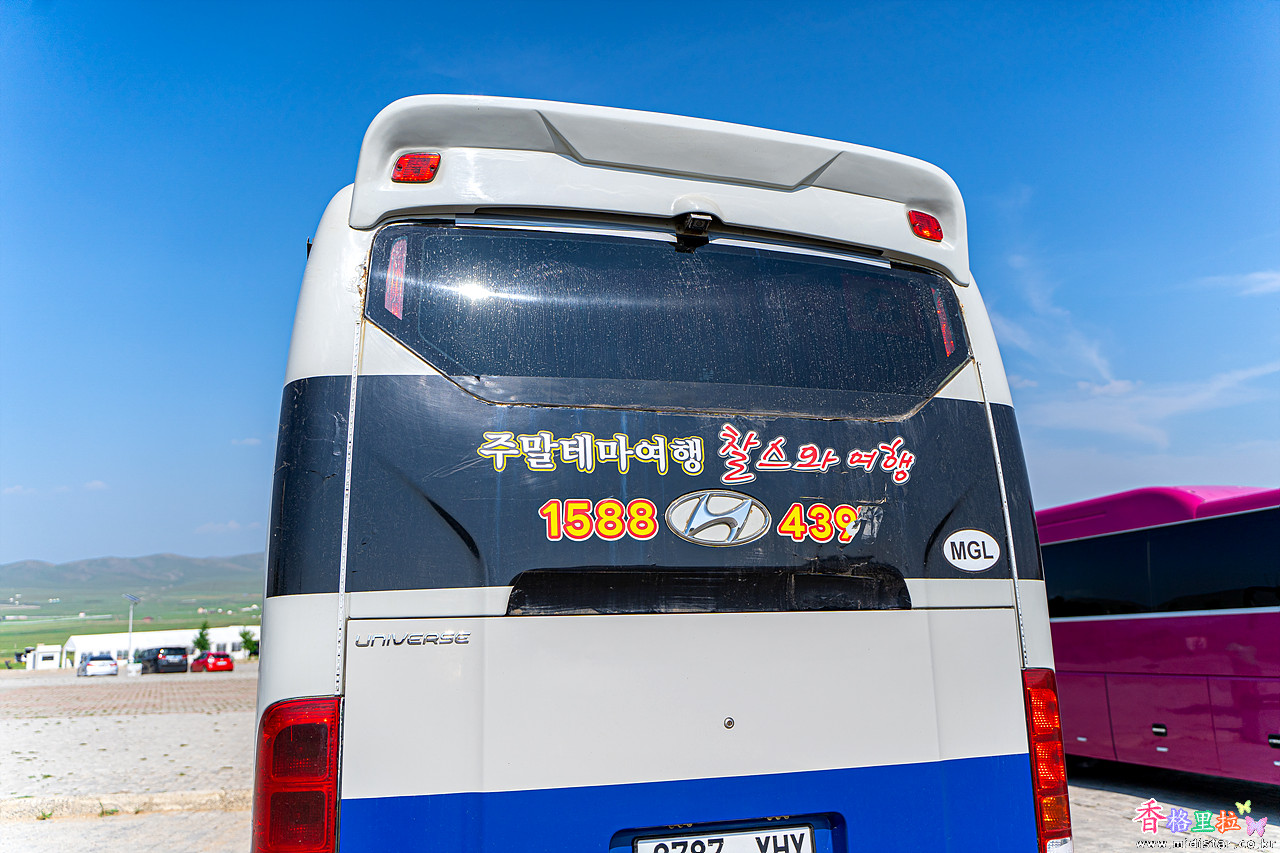 우리가 타고 다닐 버스 뒤에는 한글과 전화번호가 그대로 붙어있다.