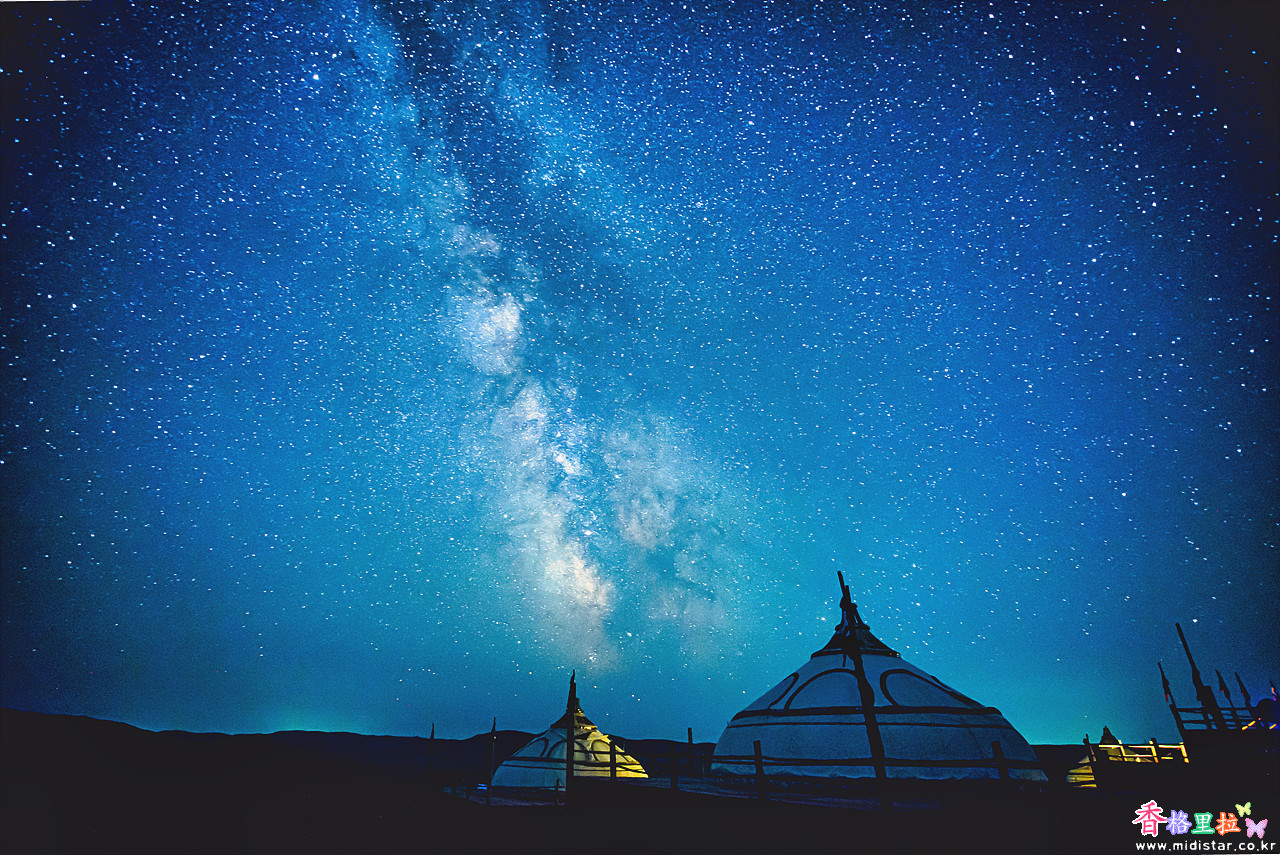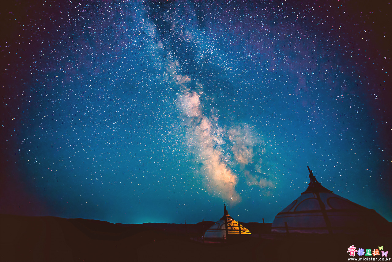 몽골의 별이 무수한 밤하늘.
