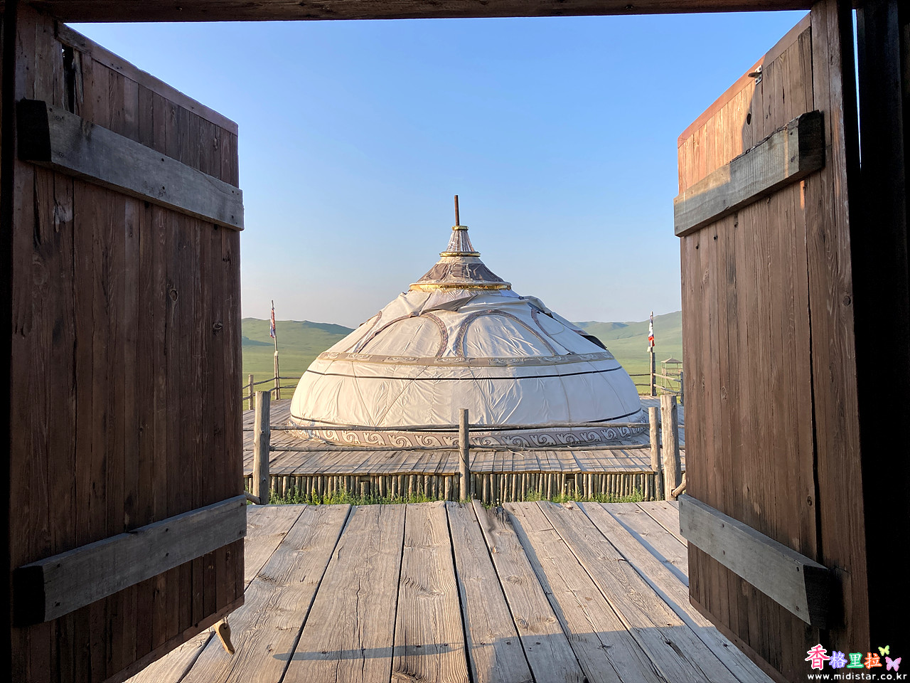 중간에 한번 잠을 깨 삼각대를 게르 안에 들여다 놓고 다시 잤는데 눈을 뜨니 이미 해 뜨는 시간이 지나 일출 사진은 못 찍었다.