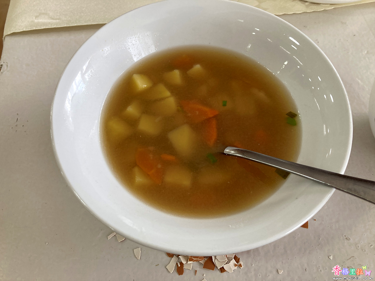 삶은 계란 1개와 감자 수프로 아침 식사를 했다.