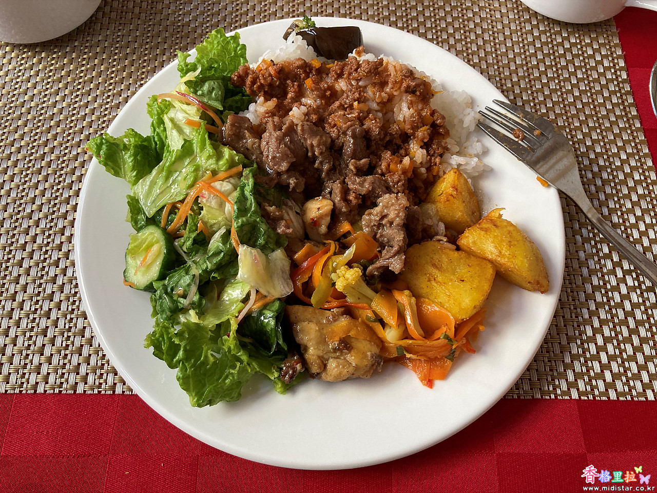 저녁 7시에 식당에서 저녁 식사를 했는데 뷔페식이다.