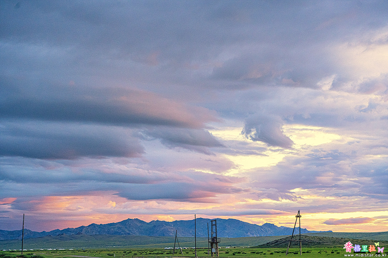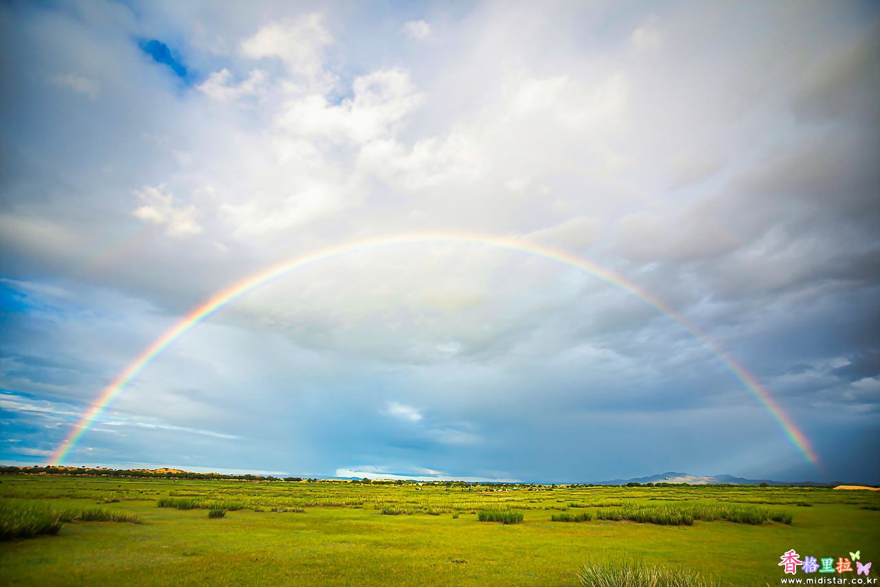 게르가 안 보이는 곳으로 가서 초원 위에 펼쳐진 무지개를 담는다.