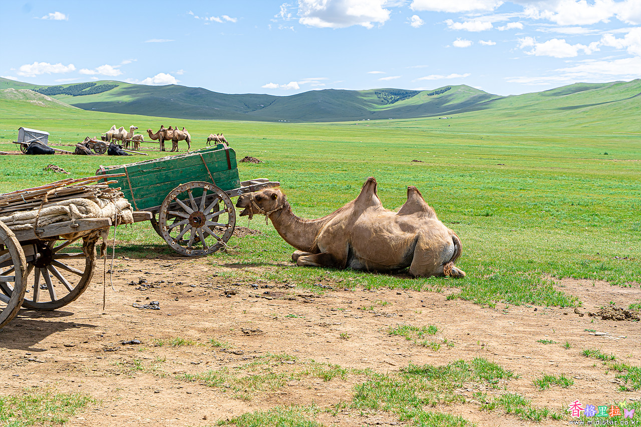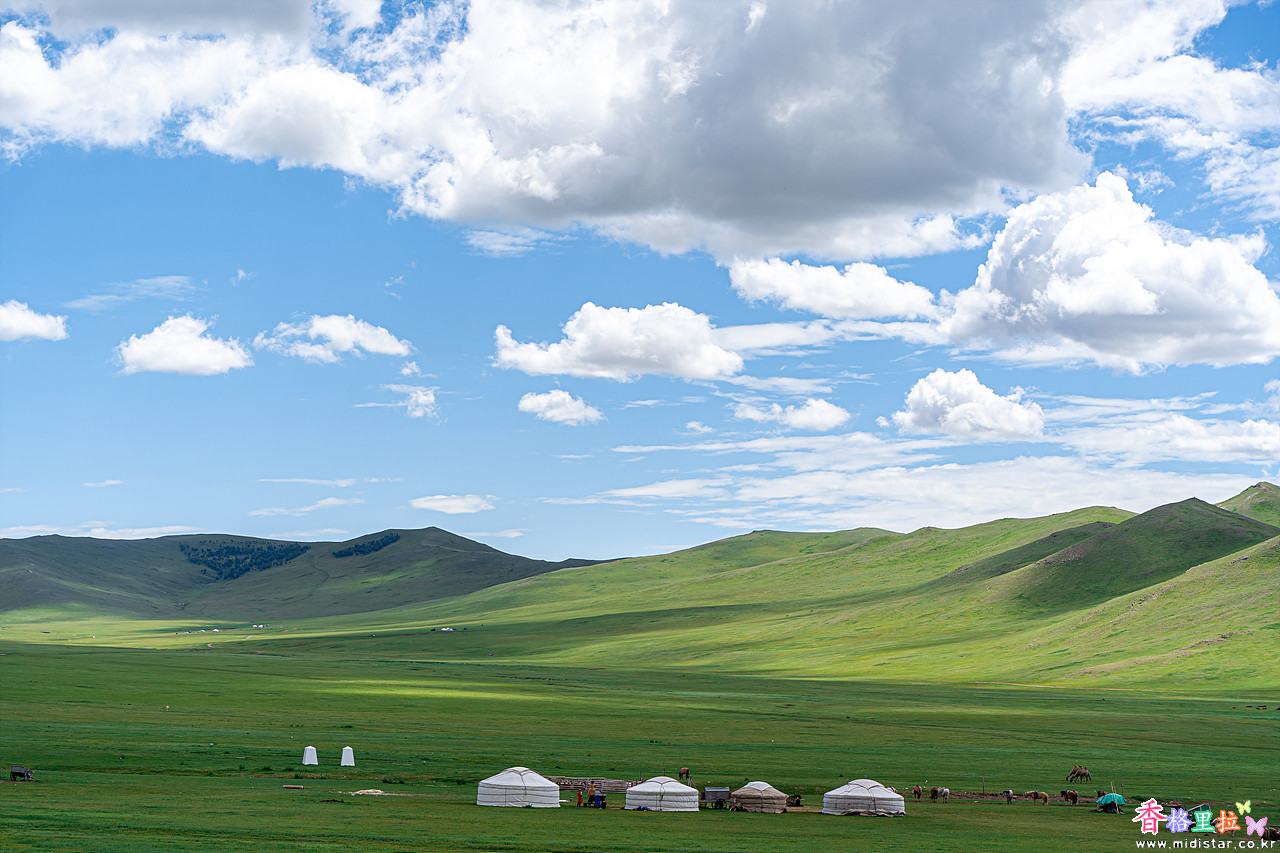 게르앞쪽으로는 산을 배경으로 넓은 초원이 펼쳐져 있다.