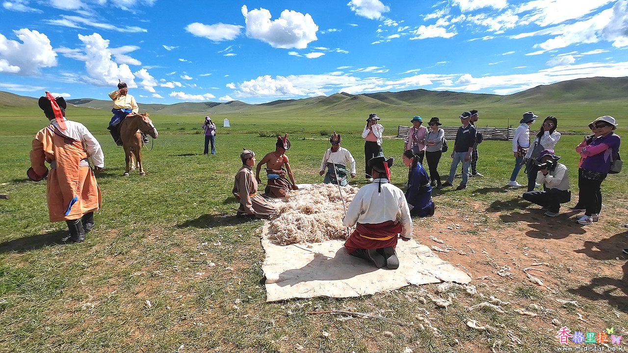 오후 3시에 몽골 민속 공연을 보러 캠프 아래의 게르에 내려갔다.