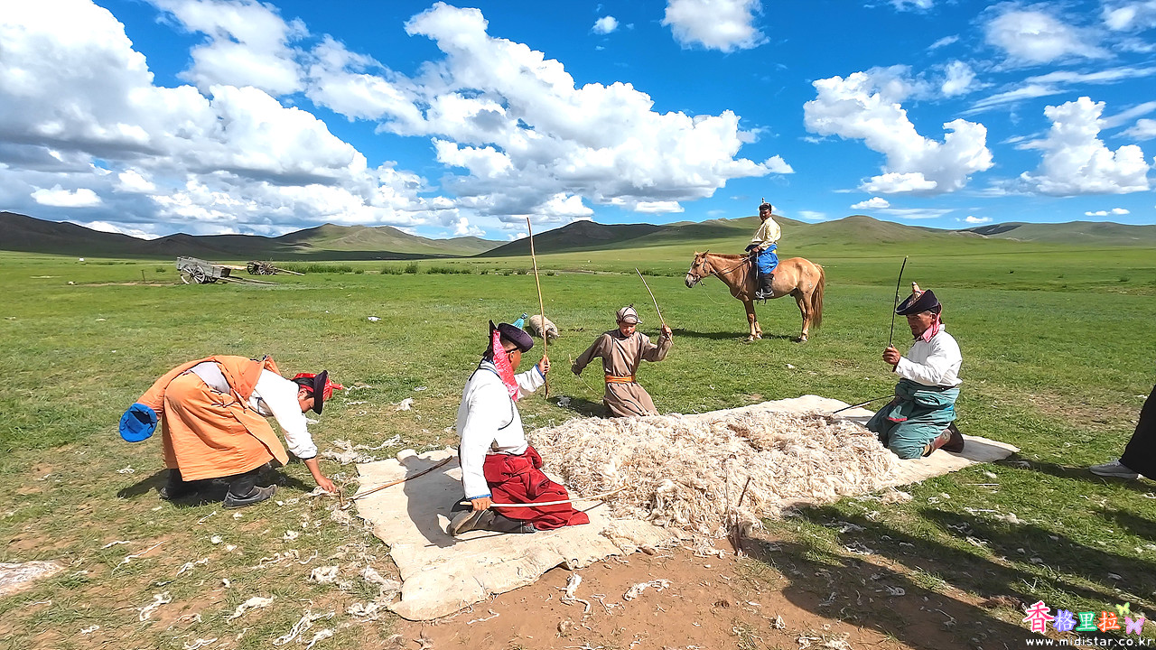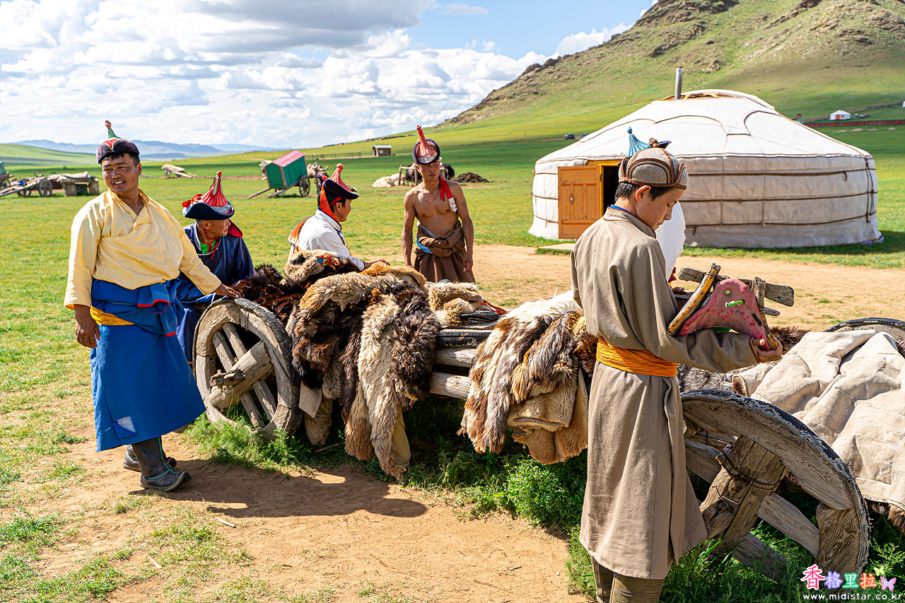 유목민들이 게르를 철거하고 다른 목초지로 이동하는 모습을 재연하는 공연이 시작되었다.