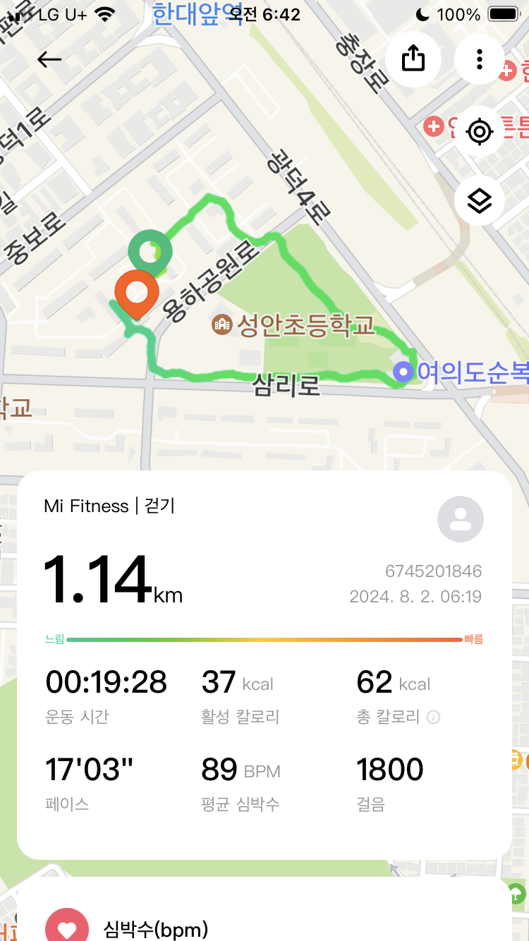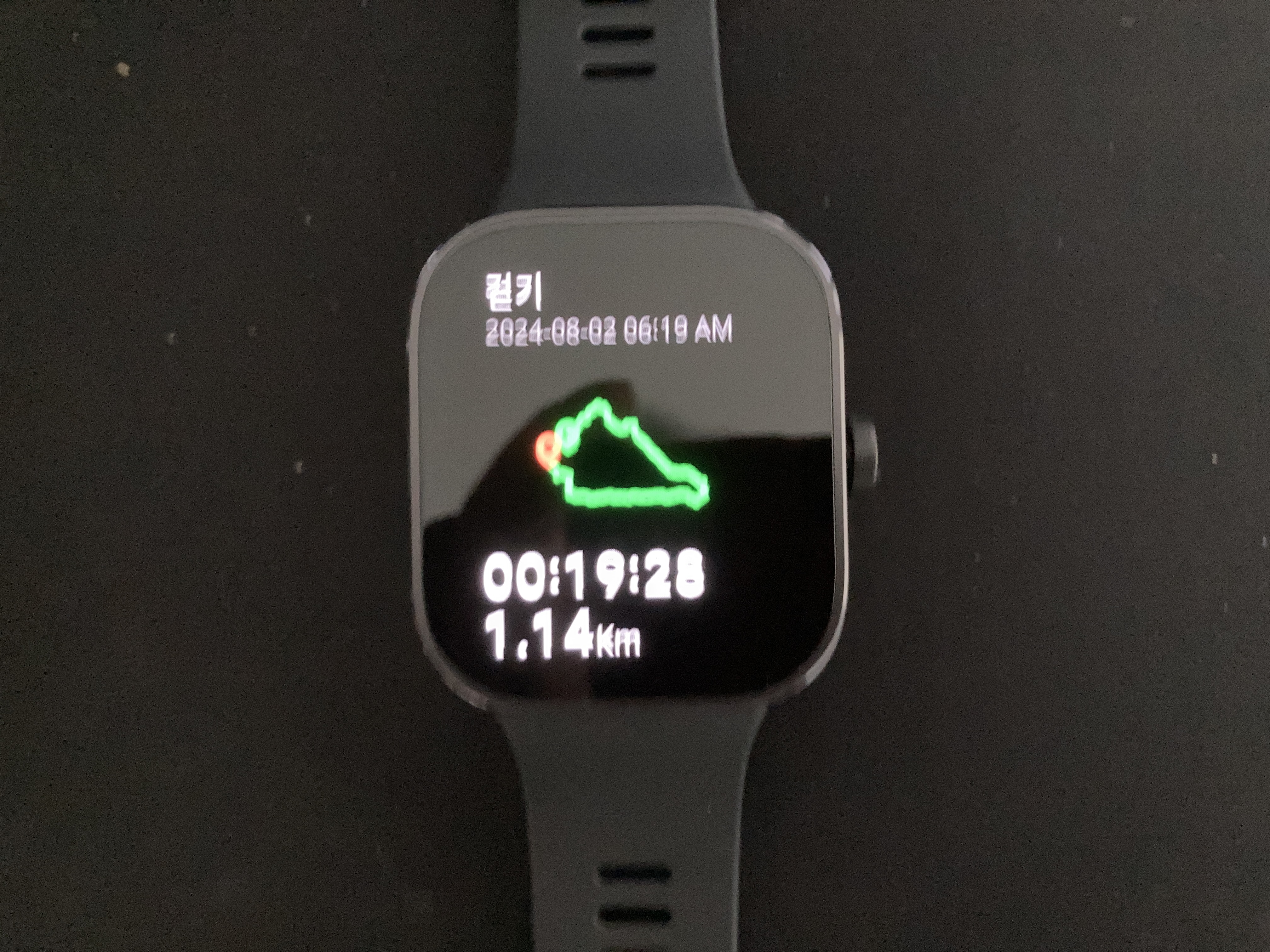 Redmi Watch 4는 걷기나 달리기 등을 할 때 기록 버튼을 누르고 걷기를 하면 내장된 GPS 수신기로 트랙을 보여준다.