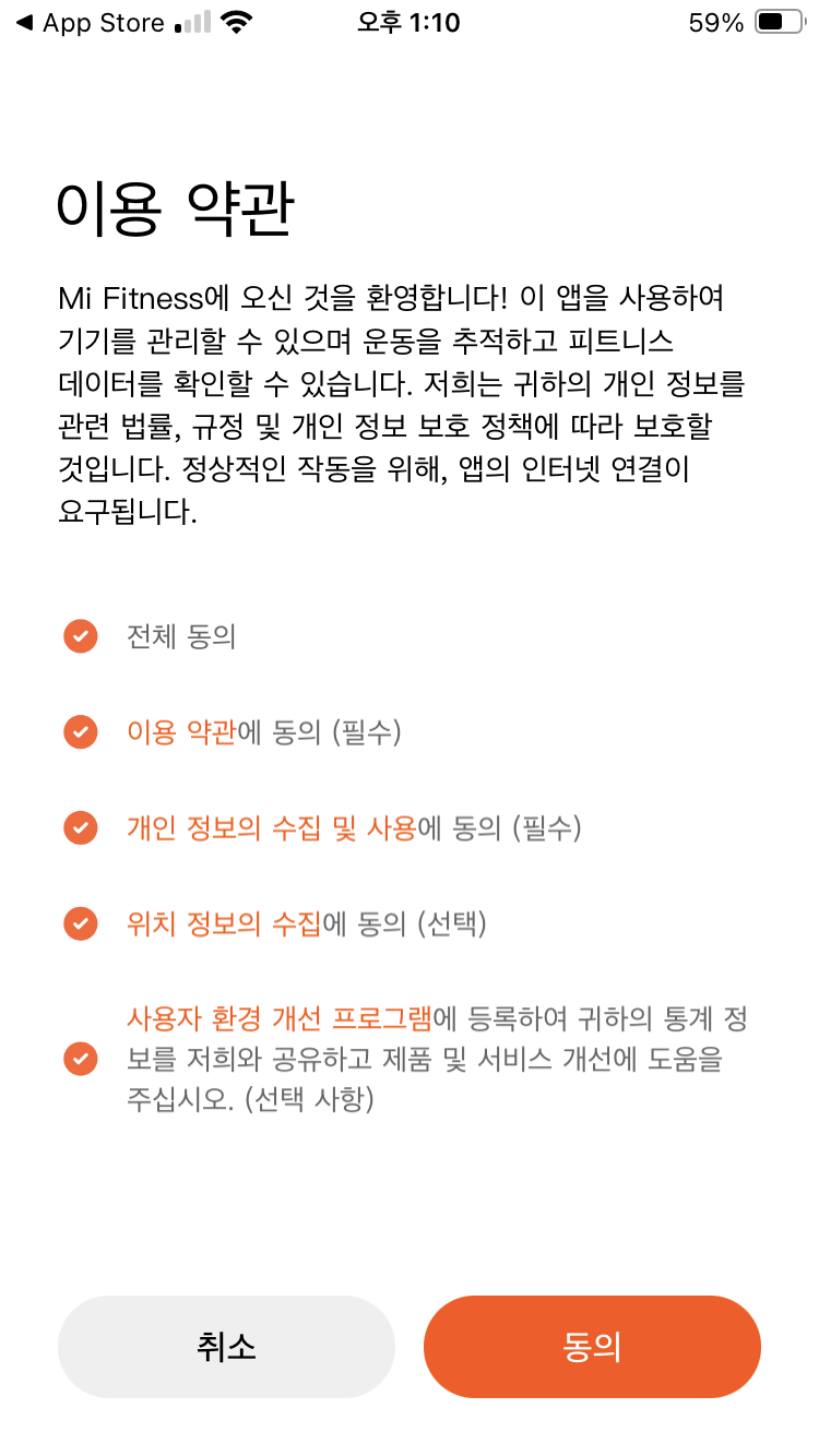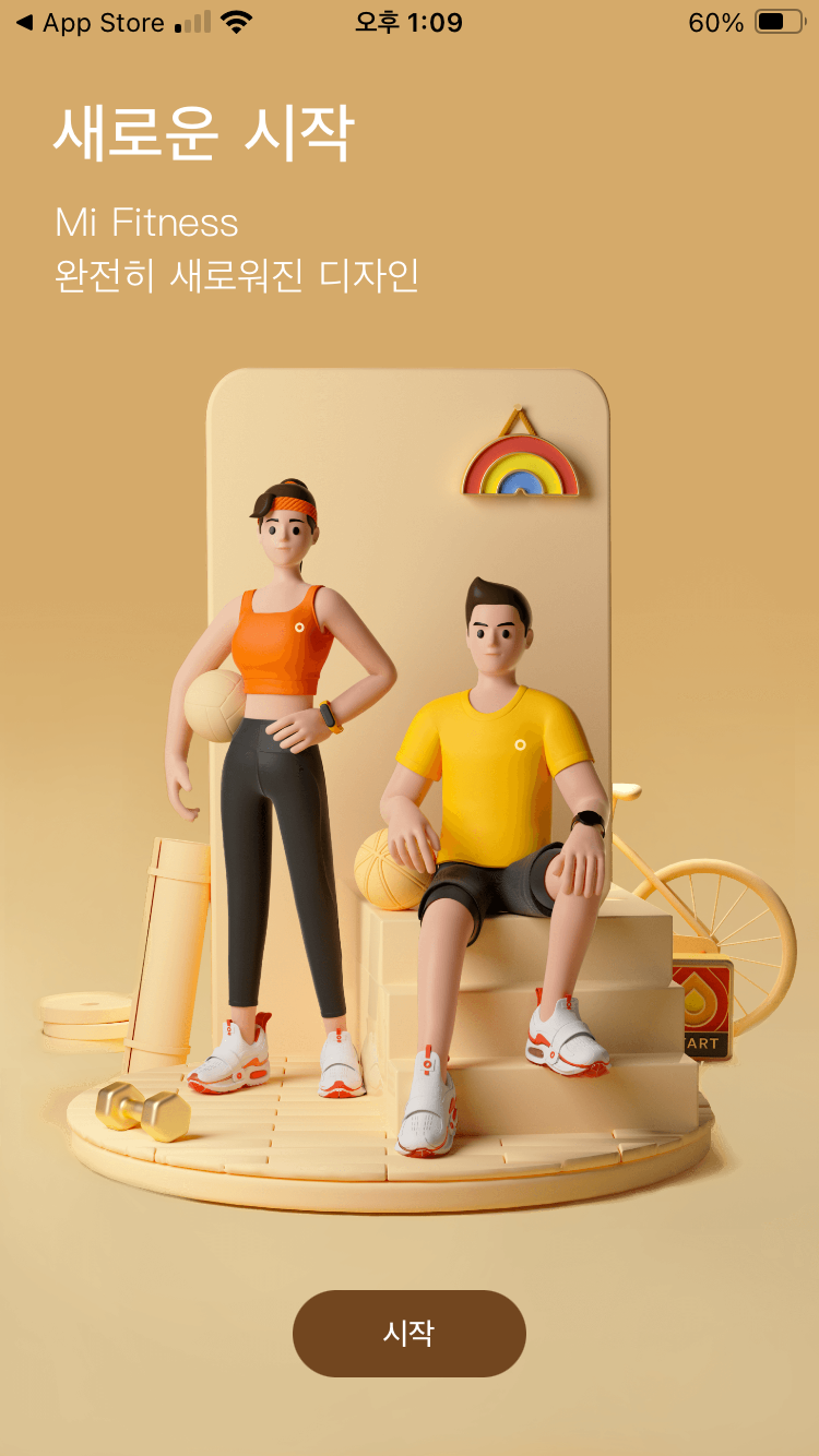 QR 코드를 스마트 폰으로 사진 찍거나 APP Store에서( 나는 애플 스마트 폰 사용) Mi Fitnees 앱을 다운로드하여 설치한다.