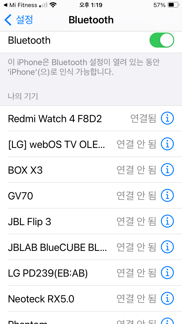 ▲아이폰 블루투스 설정에서 Redmi Watch 4 연결