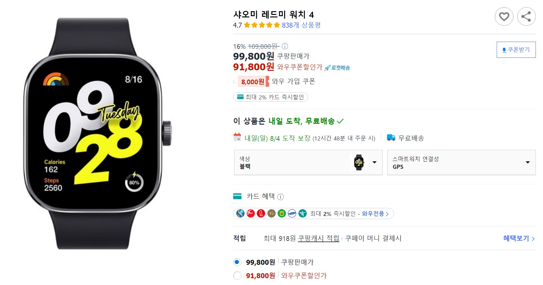 오랜만에 알리직구로 샤오미의 레드미 워치(Redmi Watch) 4 글로벌 버전을 구입했다.